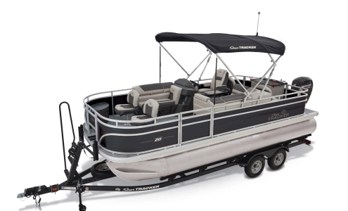 Find a fishing cove you can spend the summer in with the 2026 SUN TRACKER® FISHIN’ BARGE® 20 DLX!