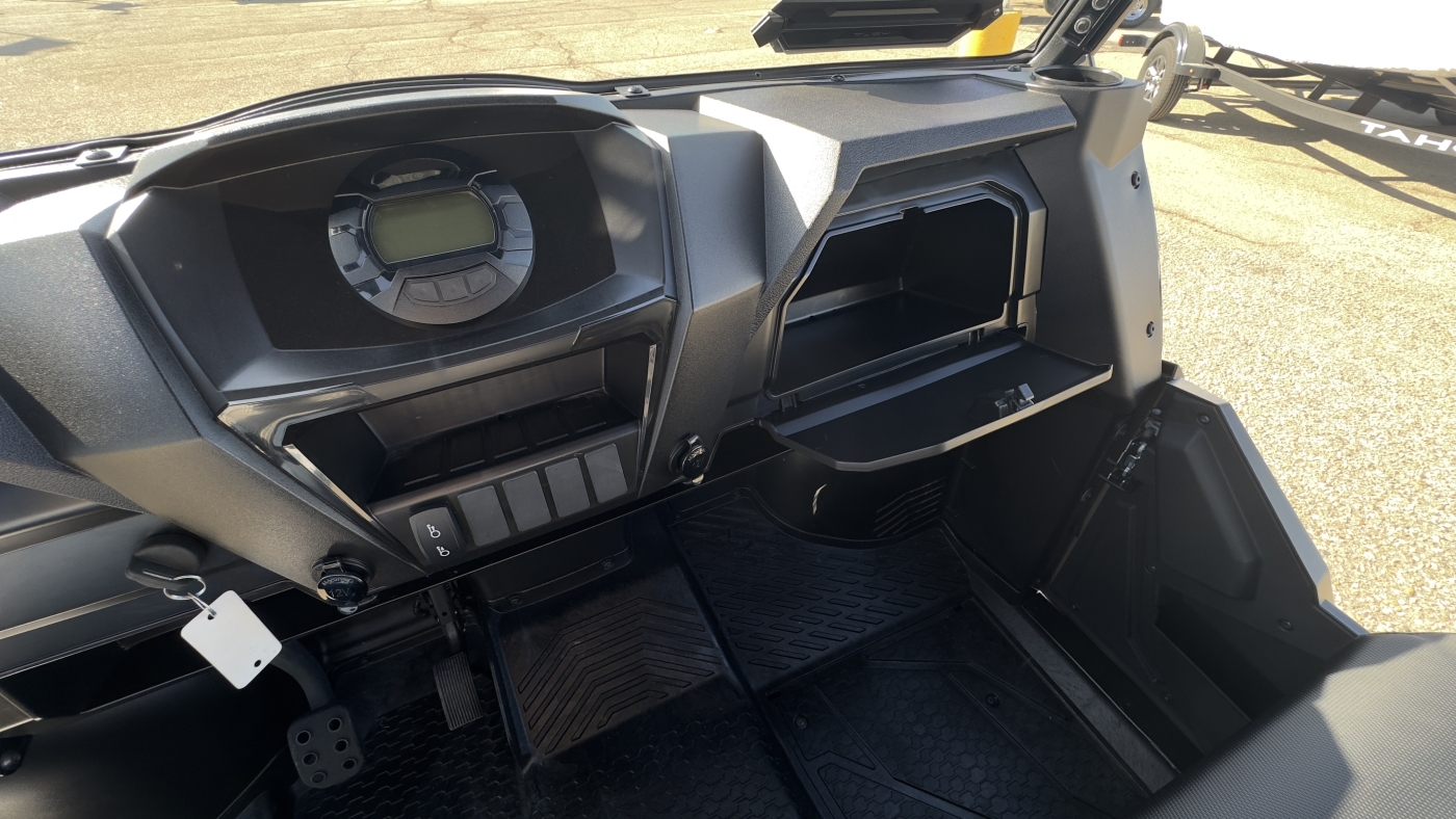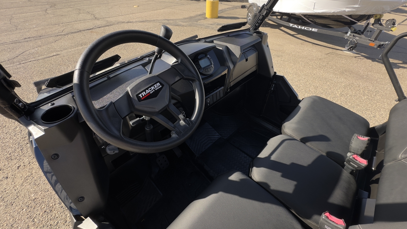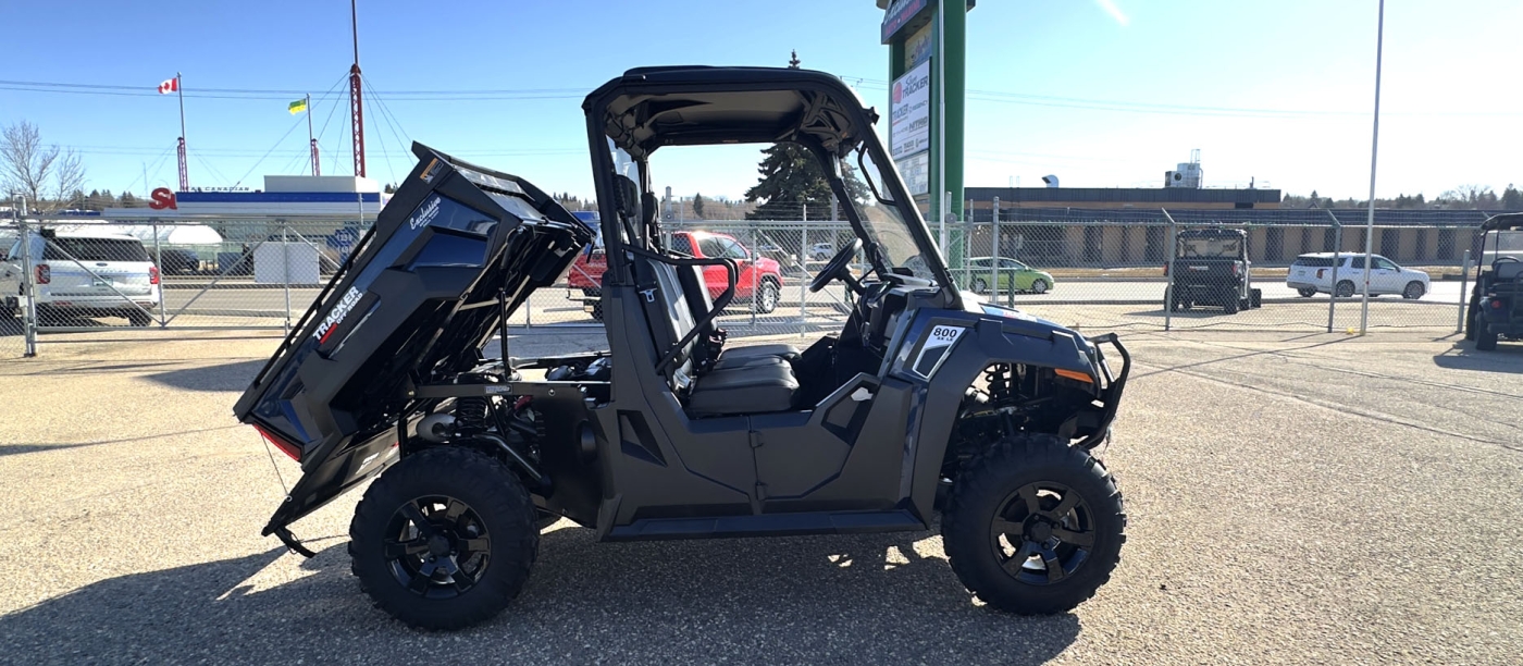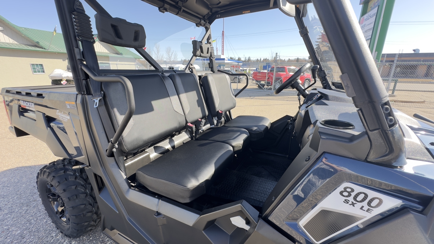 The TRACKER 800SX LE takes the acclaimed capabilities of the base model 800SX—the 50HP engine, 2,000-lb. towing capacity, 1,000-lb. capacity cargo box—and adds new automotive metallic paint (or optional camo), a 4500 lb. winch, ranch bumper and 27" tires. Further updates for 2022 bring improved acceleration, enhanced throttle response, and an all-new suspension that improves ride quality and offers up to 13" of ground clearance.