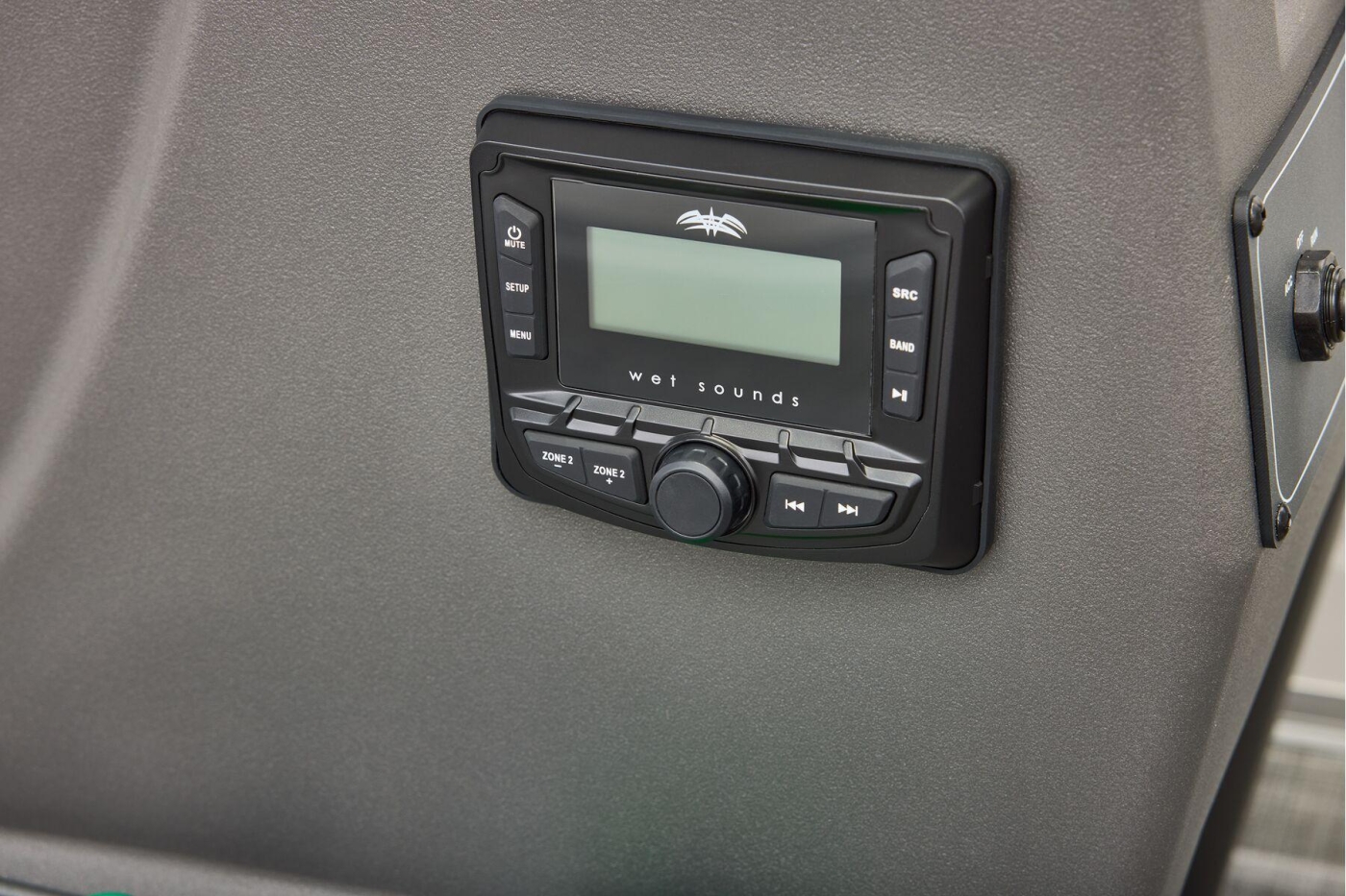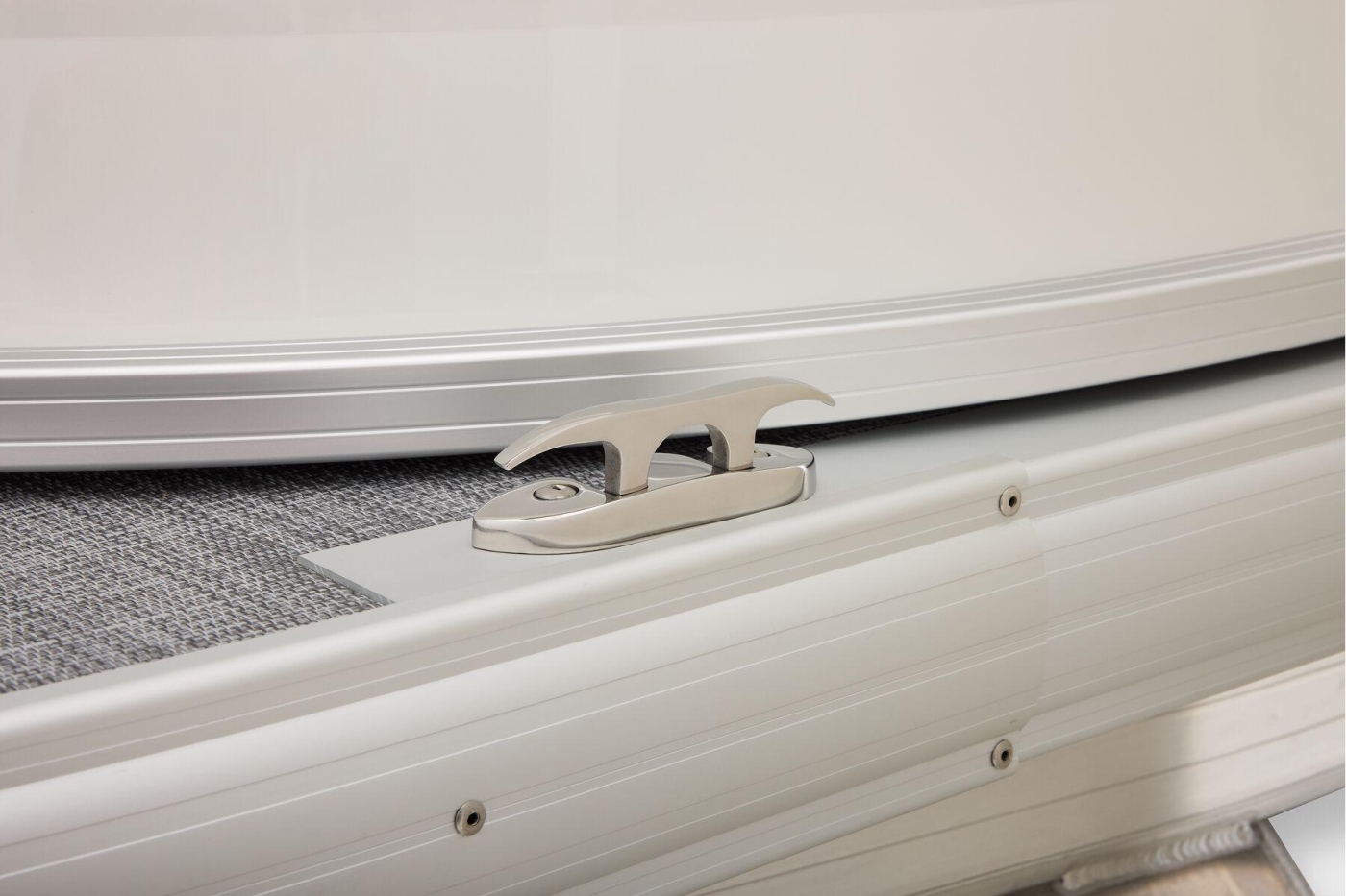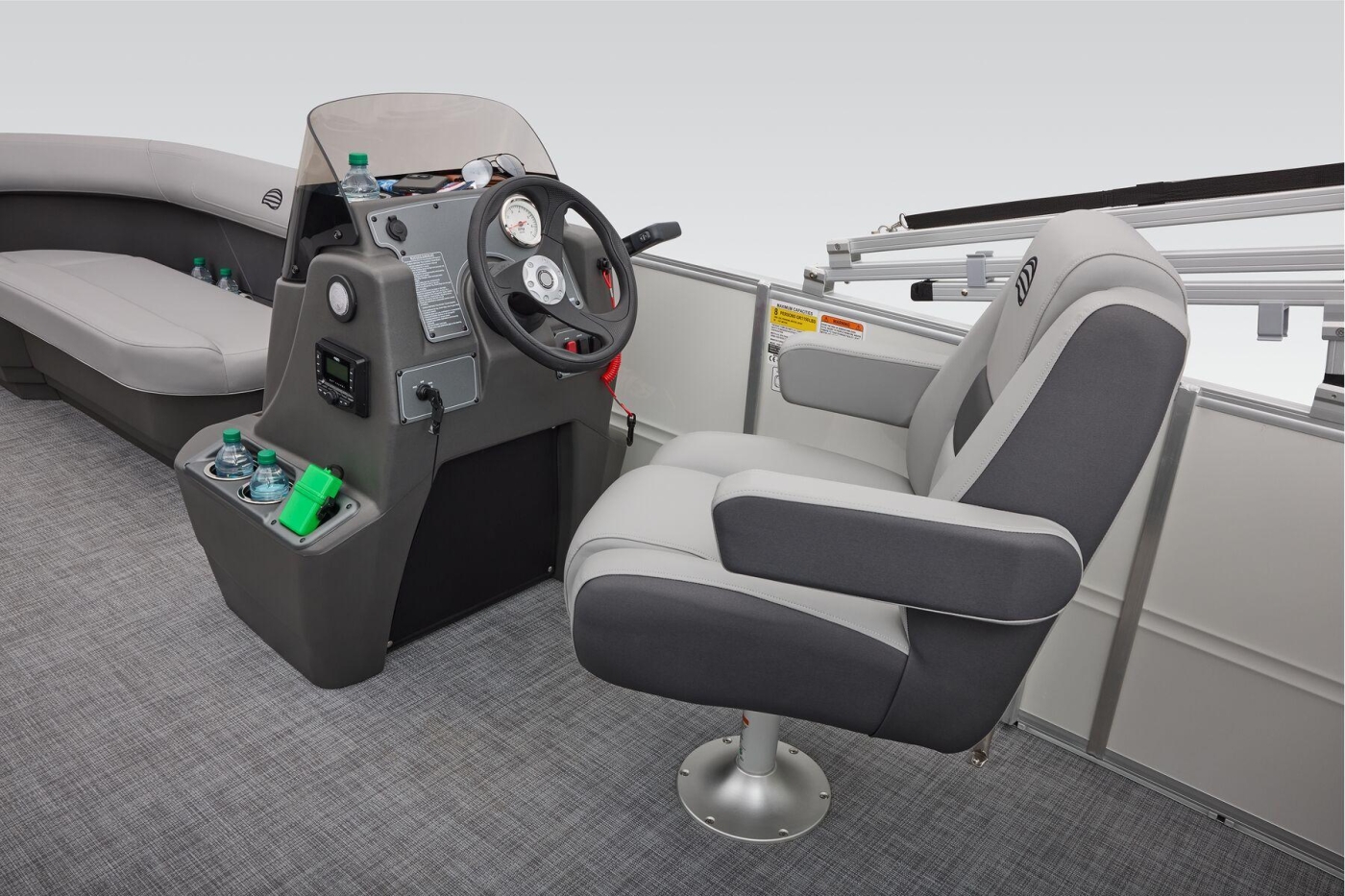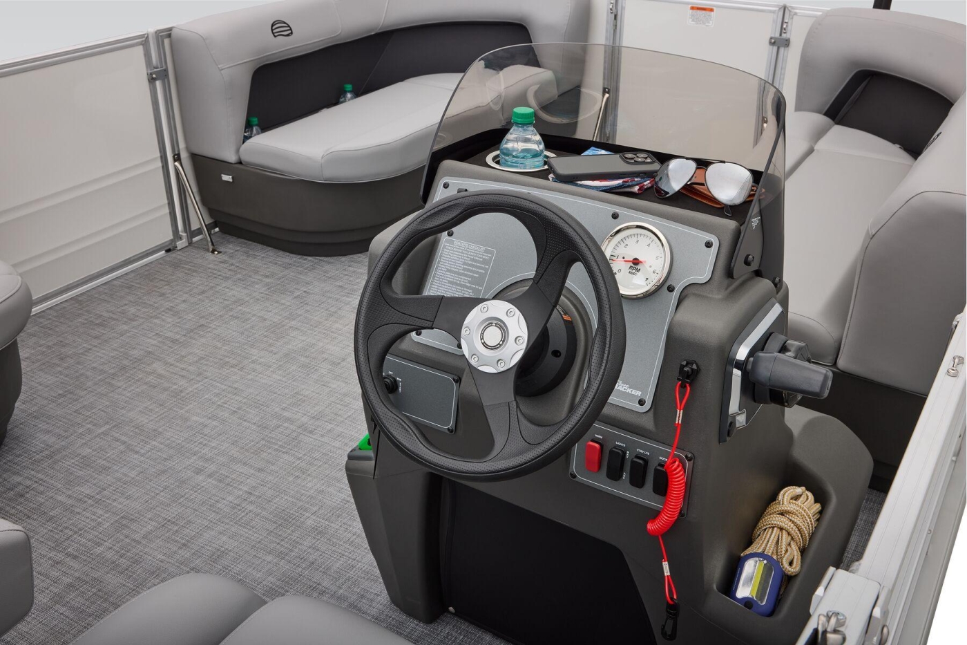 This year's PARTY BARGE gets some slick upgrades. Extra cupholders and storage built into the lounge backrests and improved handles make keeping your supplies at hand easier than ever. A new driver console design creates extra style. The boarding ladder has wider, more ergonomic steps. Crank up the soundtrack of the summer with the standard Bluetooth®-capable Wet Sounds™ stereo and pull up the 7' bimini top to party in the shade when the sun is high. Find your corner of the lake and relax in one of the three corner lounges.