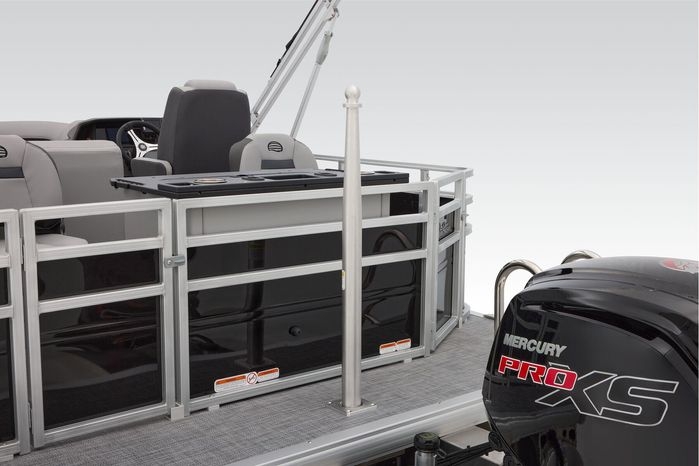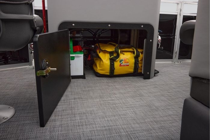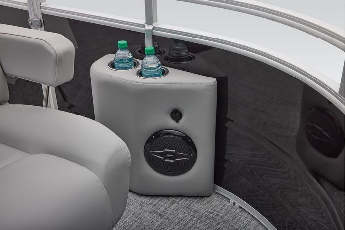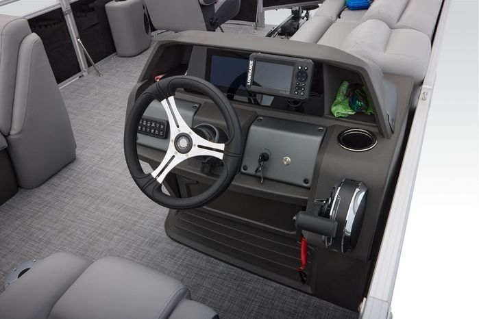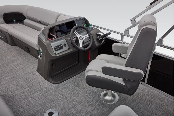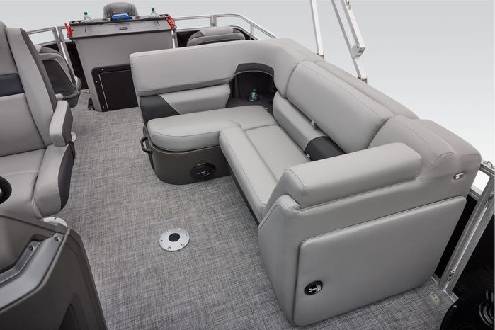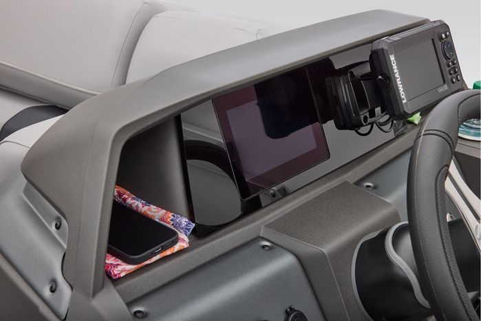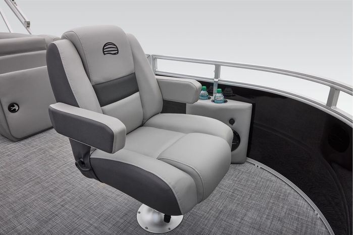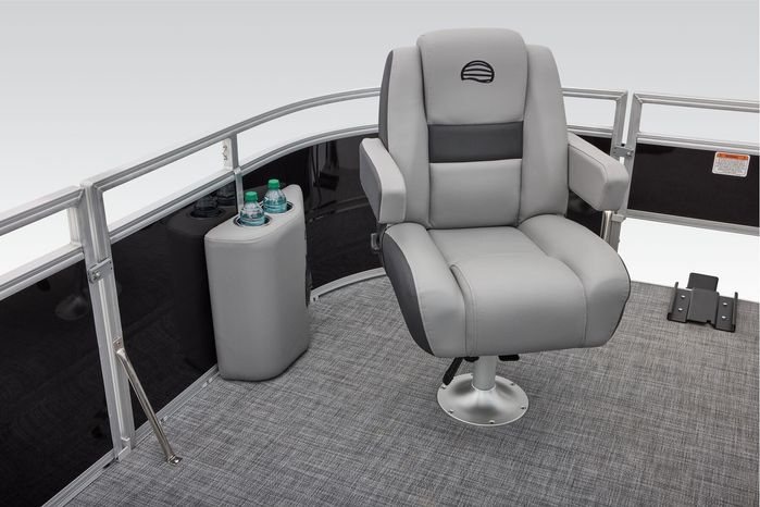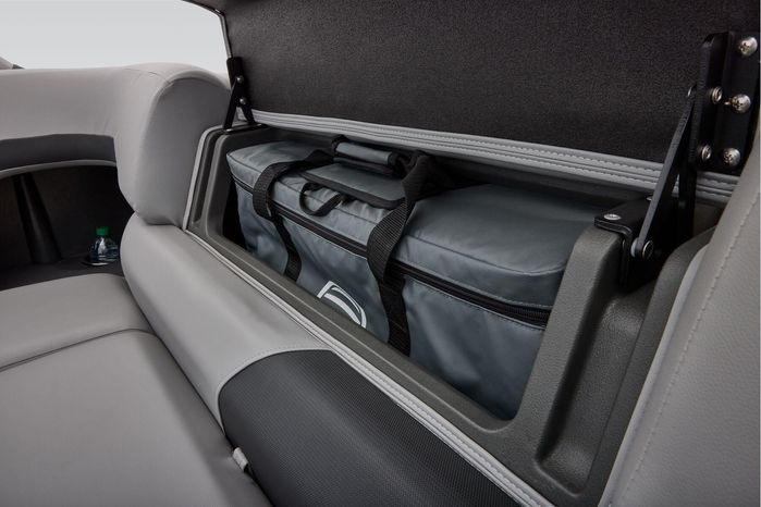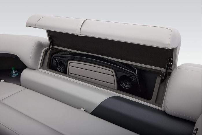 The party for up to 10 people starts with the dual long lounges that boast STOW MORE™ compartments for packing and securing supplies. The 2026 model adds a new, wider ladder that makes reboarding easier. The new year also brings cut-out sections in the backrests that give you more cupholders and space for gear. For the anglers, there are swiveling pedestal fishing chairs on both ends of the pontoon and an 8-gal. aerated livewell complete with a rod holder and a composite lid with an integrated fish ruler.