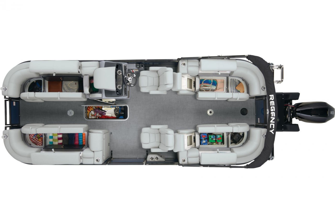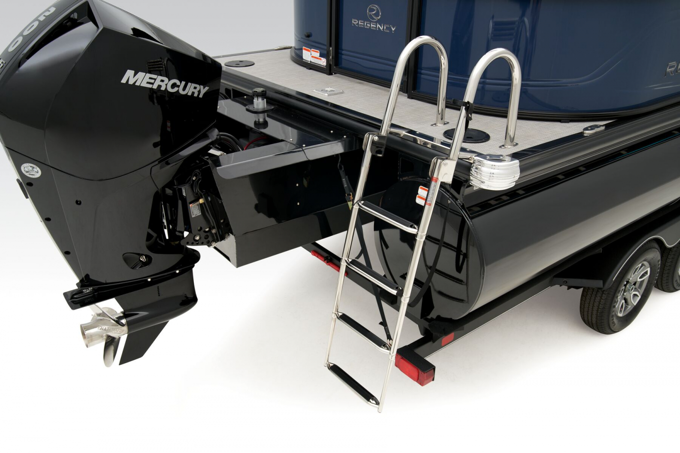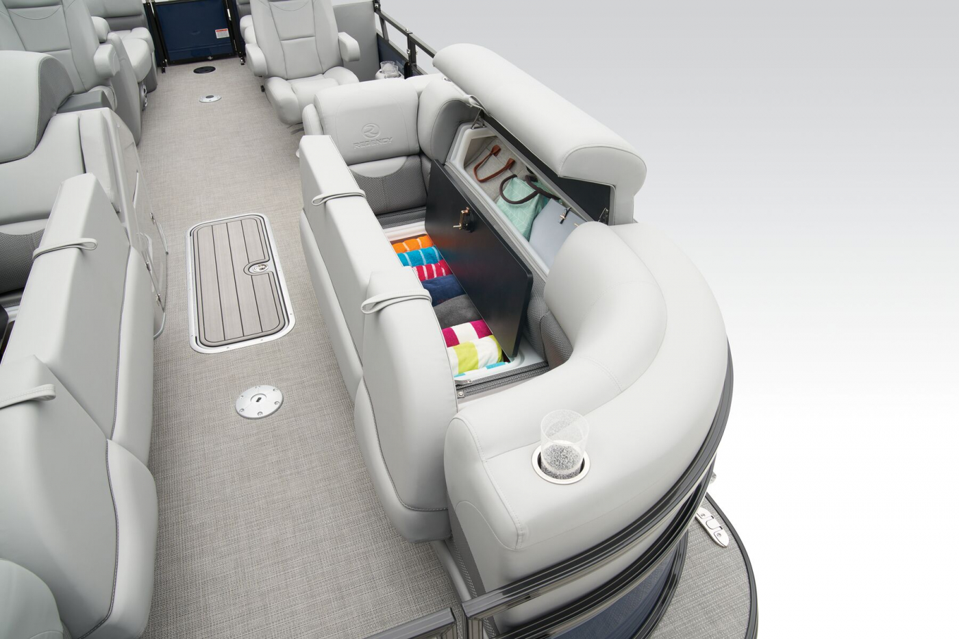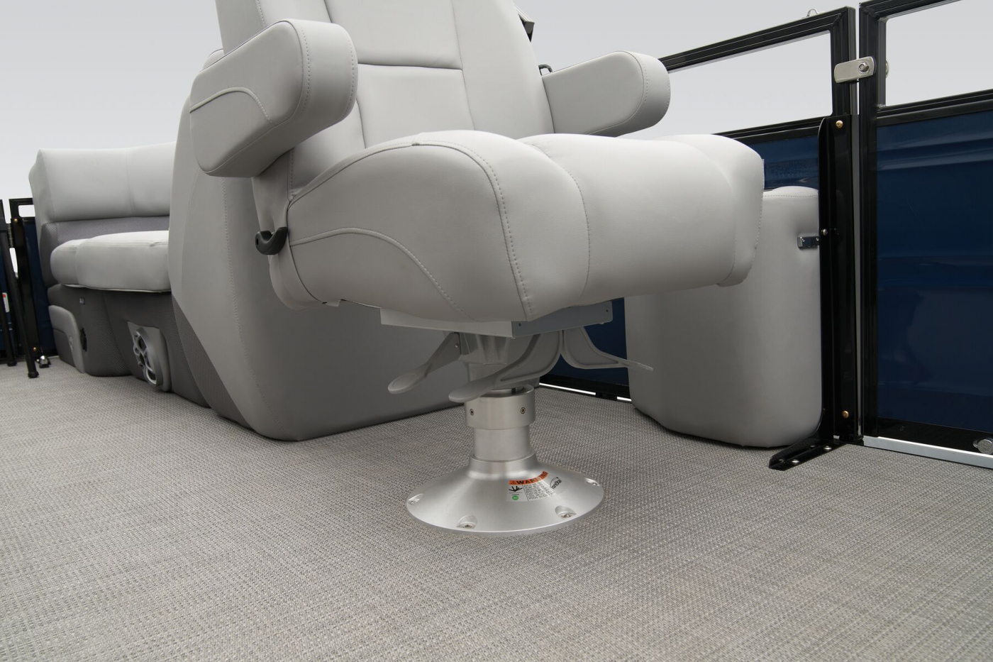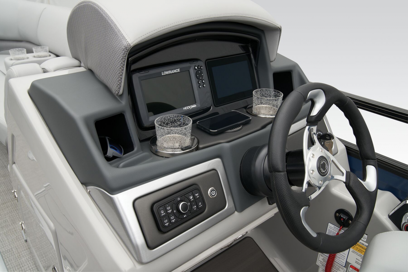 Enjoy the bow-to-stern soft-touch woven flooring that remains cool and slip-resistant throughout the summer. And when it’s time to ramp up the fun, unleash up to 250 horsepower with a jab of the throttle. The FourStroke Mercury® engine harmonizes flawlessly with the tritoon's impeccable handling, courtesy of the trio of 26-foot powder-coated logs equipped with LED accent lighting for a striking appearance after dark.