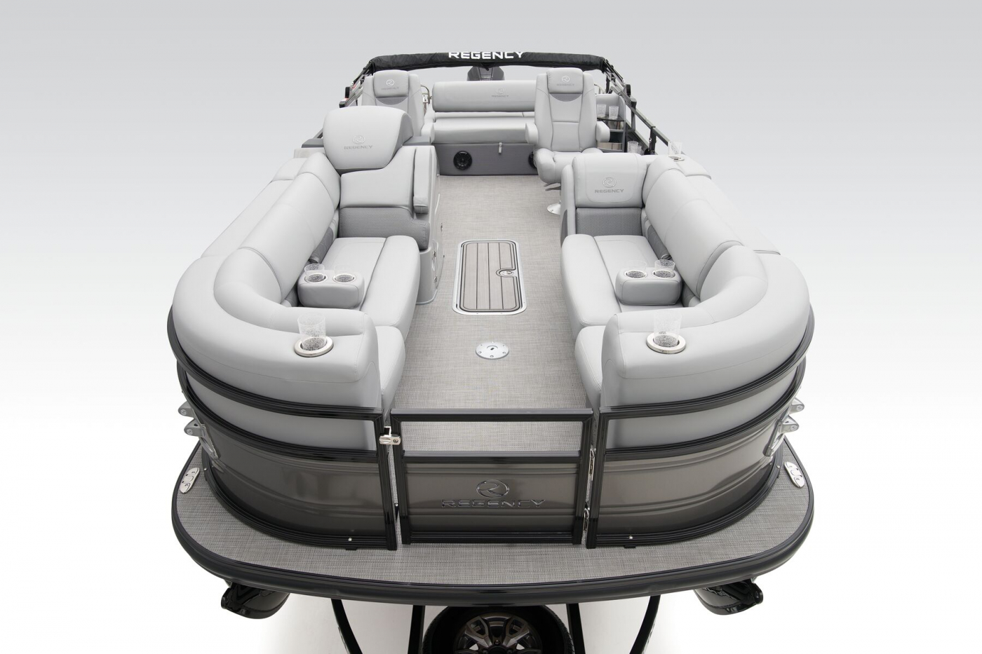 Soak up the sun from the aft switchback bed lounge as you peacefully relax atop supple, premium upholstery or enjoy a front row seat to the watersports action behind. Speaking of action, the XP3 performance package delivers strakes on all three logs and combine with and extended motor pod for greater handling, speed, and quieter operation.