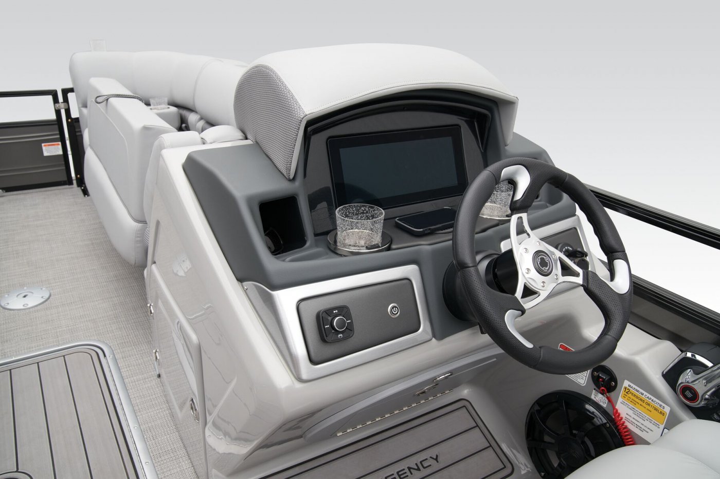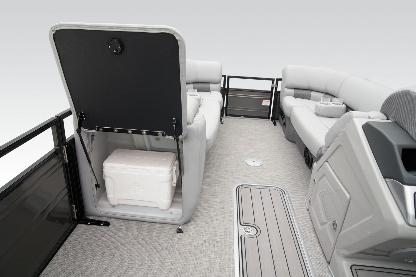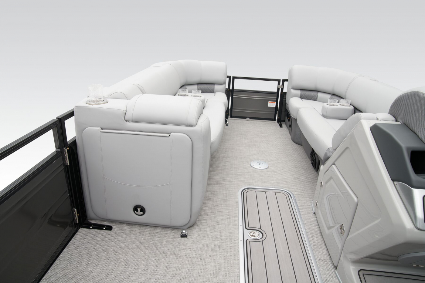 Standard technology on the LE3 Sport Tritoon - Best Luxury Pontoon Boat enhances safety as well as fun with a rear-facing camera, stereo controls at the helm and stern, an in-dash multifunction display and premium, LED pushbutton switching for effortless control. With so many features and advancements, the hardest thing you’ll do all day is take it back to the dock.