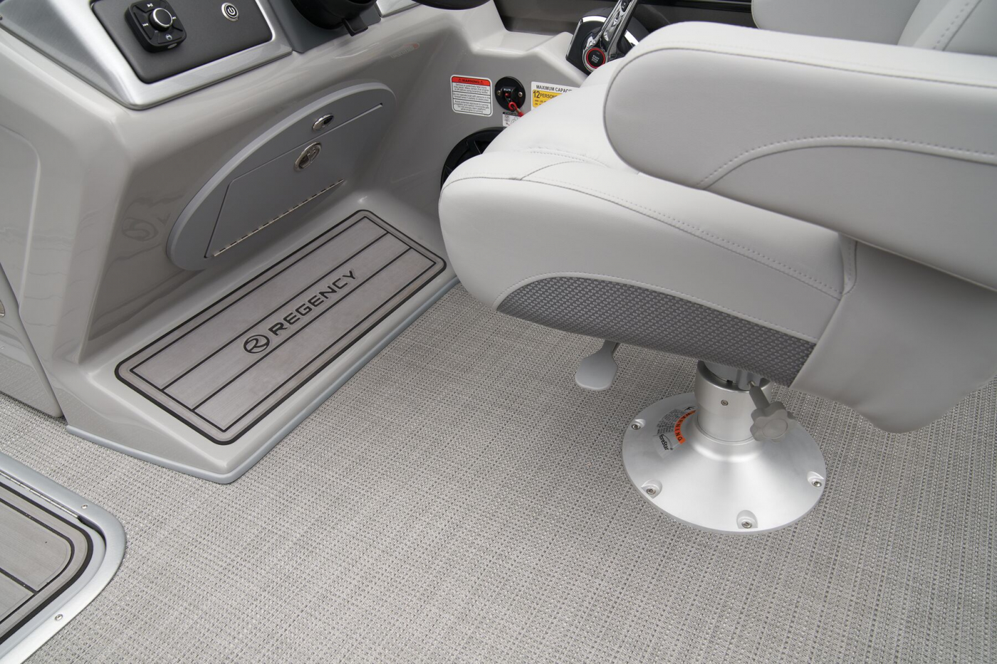 - Plush, adjustable-height, reclining & swiveling captain & co-captain chairs w/lift-assists, self-leveling arms & mesh back storage pouches