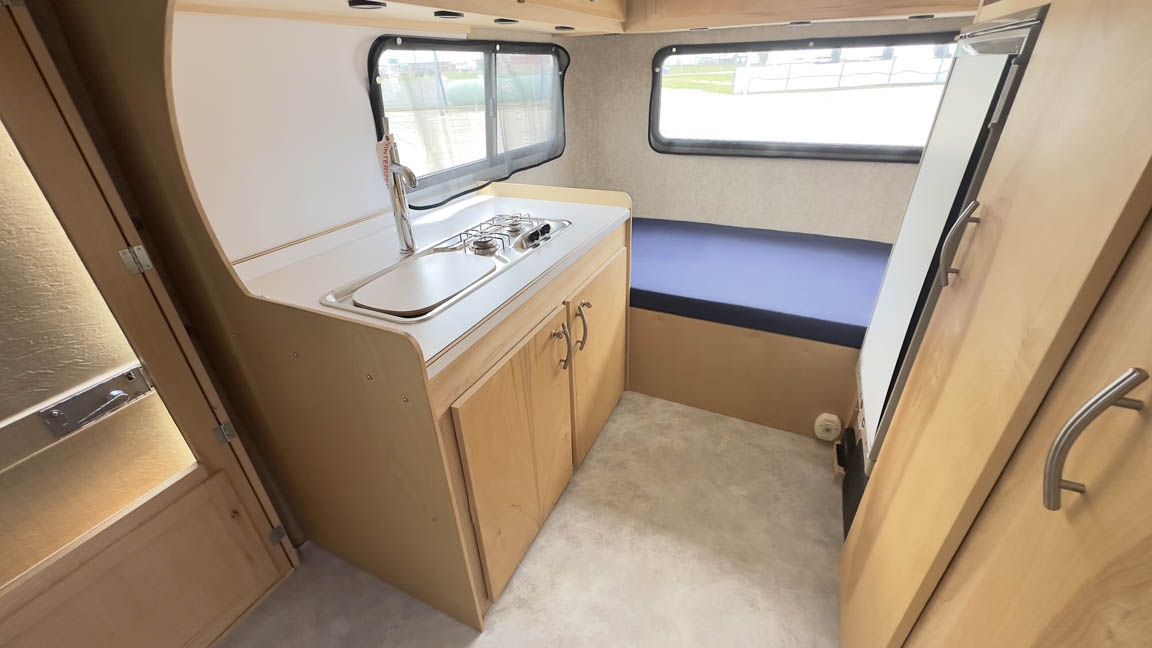 - Sleeping: Accommodates 2-4 people, with a dinette that converts into a bed and potentially a front couch or bunk for sleeping.