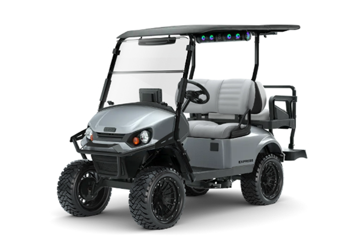 The E-Z-GO® Express 4 is engineered to perform. Enjoy LED headlights, lifted and standard ride height options, and premium offerings for the perfect ride. With all-new Technology packages and luxury seating options, every turn of the ignition is the start of a great time.