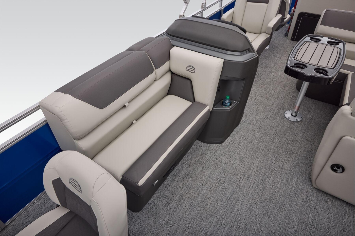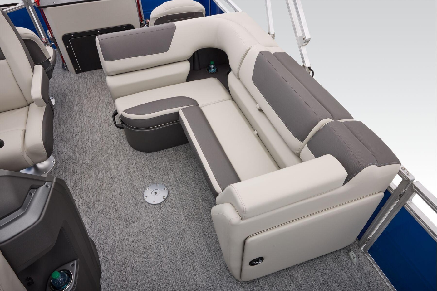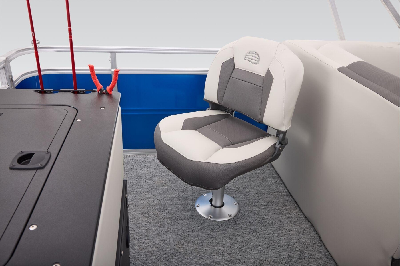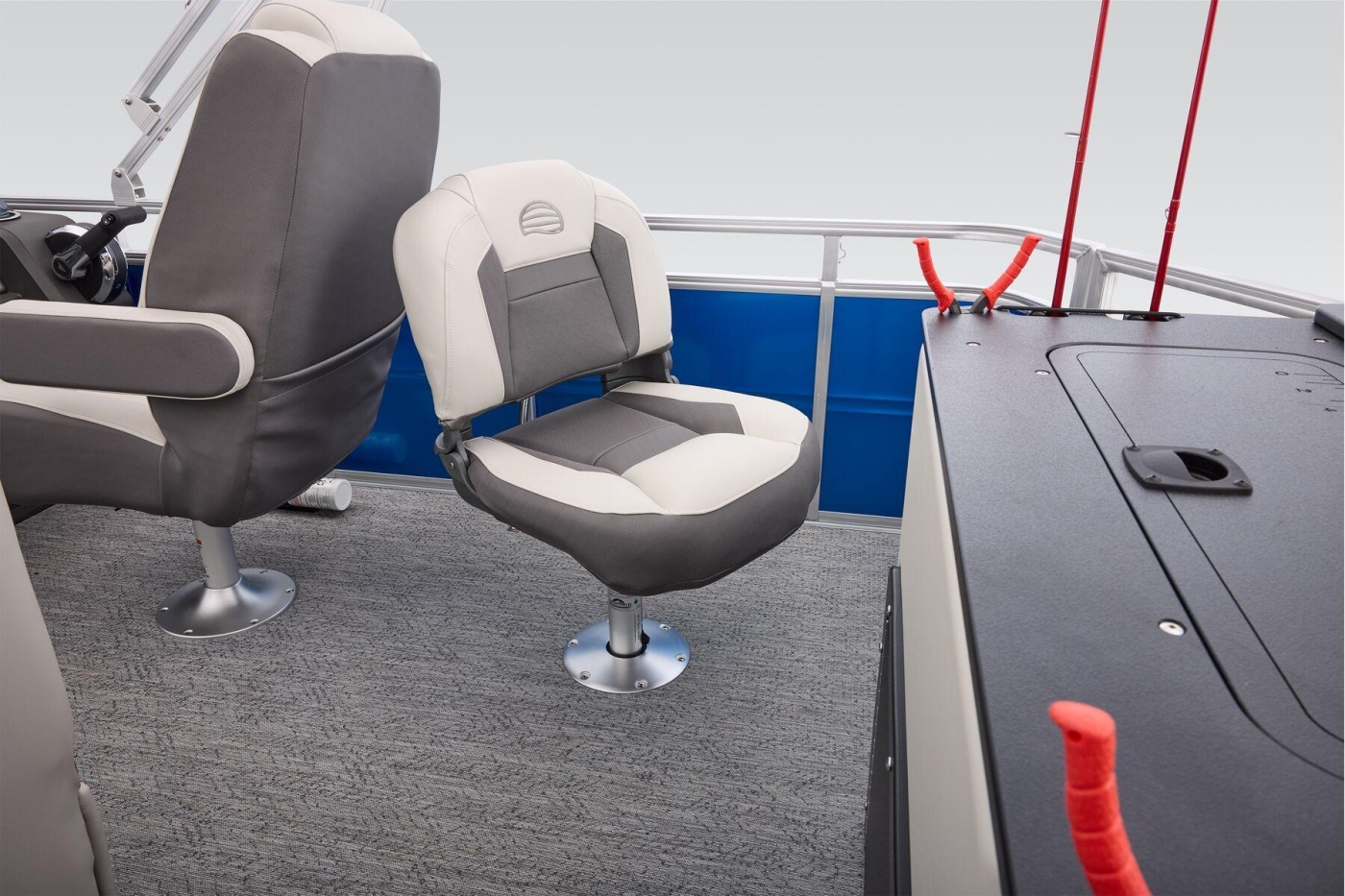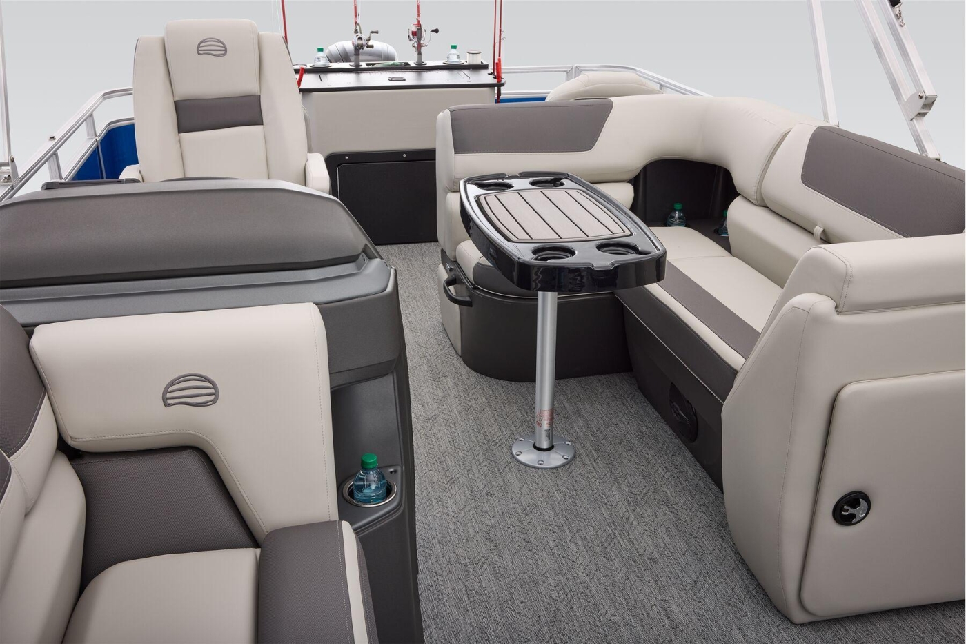 This fishing pontoon’s 19' 10" deck fits up to 10 people looking for a great day of casting lines. When it’s time for lunch, set up the removable table with drink holders near the comfortable L-shaped aft lounge. Your guests can also relax in the lounge seat in front of the driver’s console.