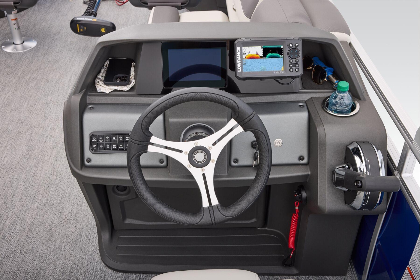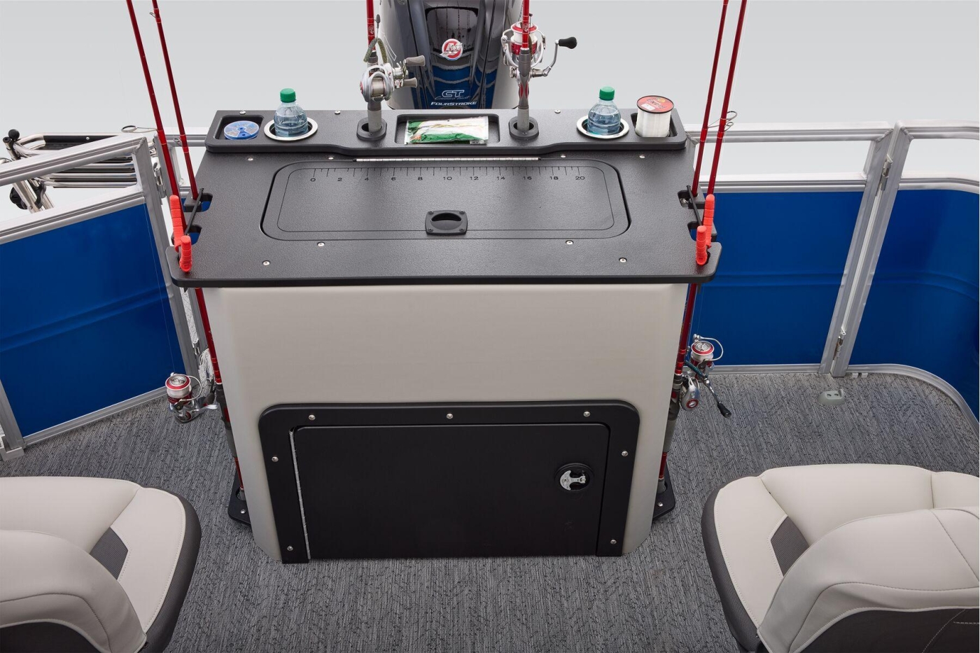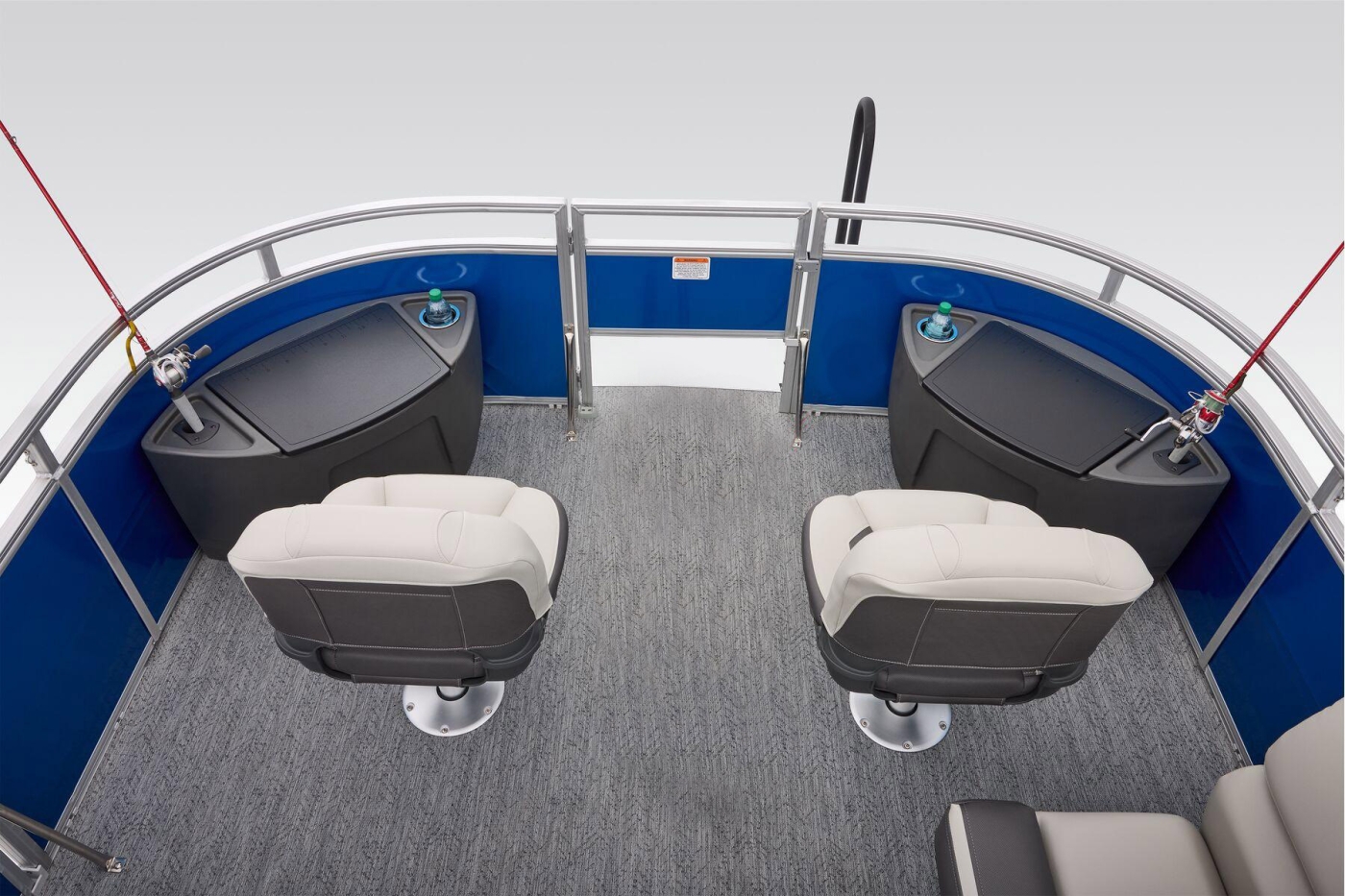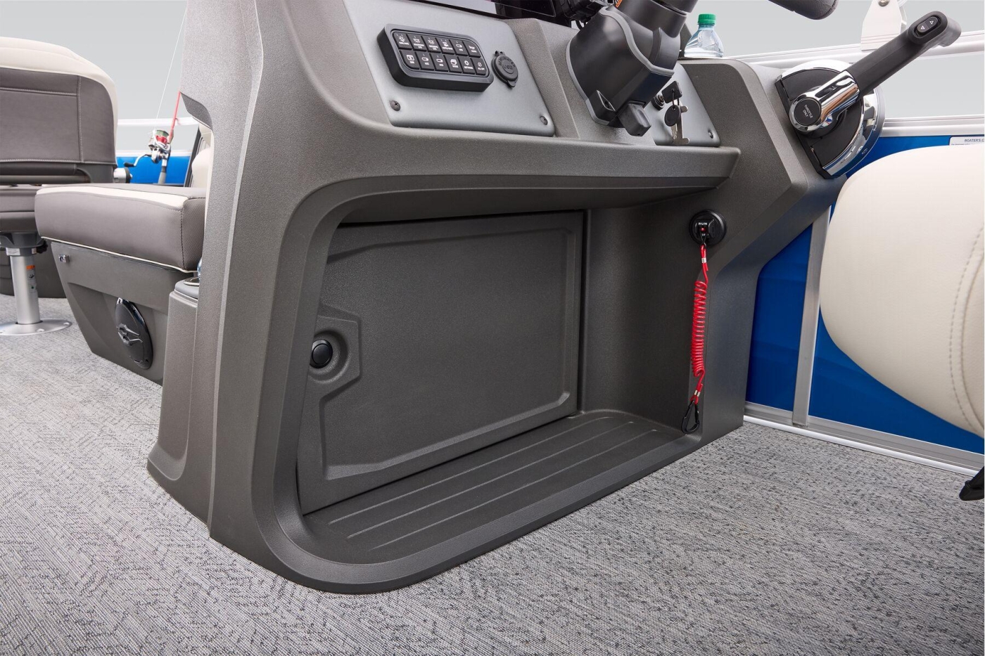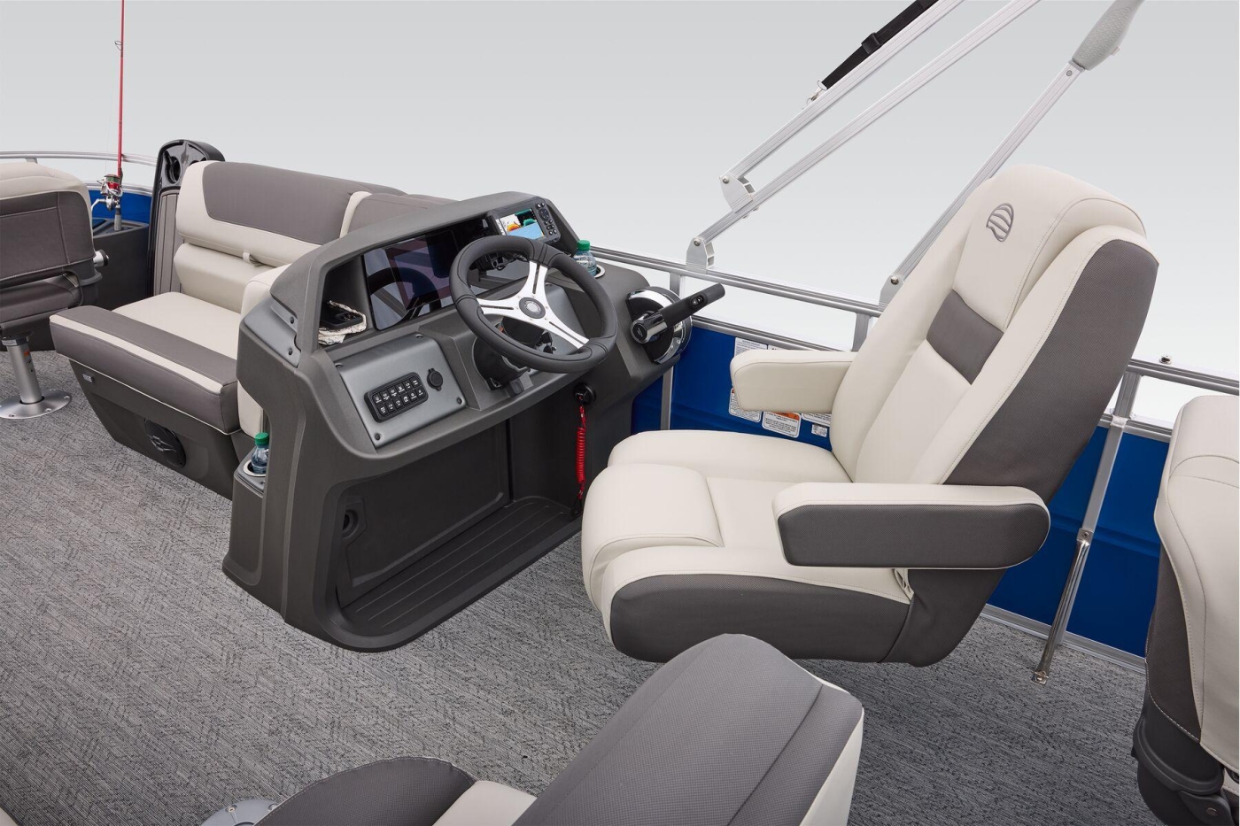 This fishing pontoon’s 19' 10" deck fits up to 10 people looking for a great day of casting lines. When it’s time for lunch, set up the removable table with drink holders near the comfortable L-shaped aft lounge. Your guests can also relax in the lounge seat in front of the driver’s console.