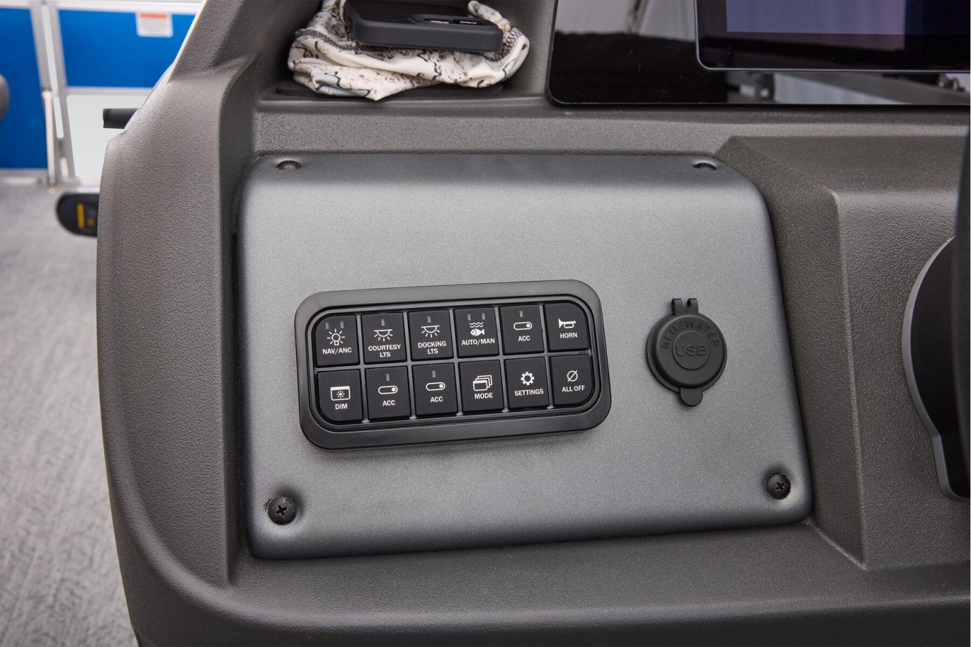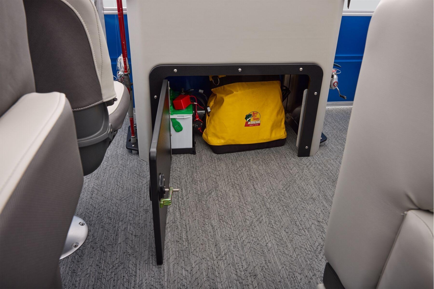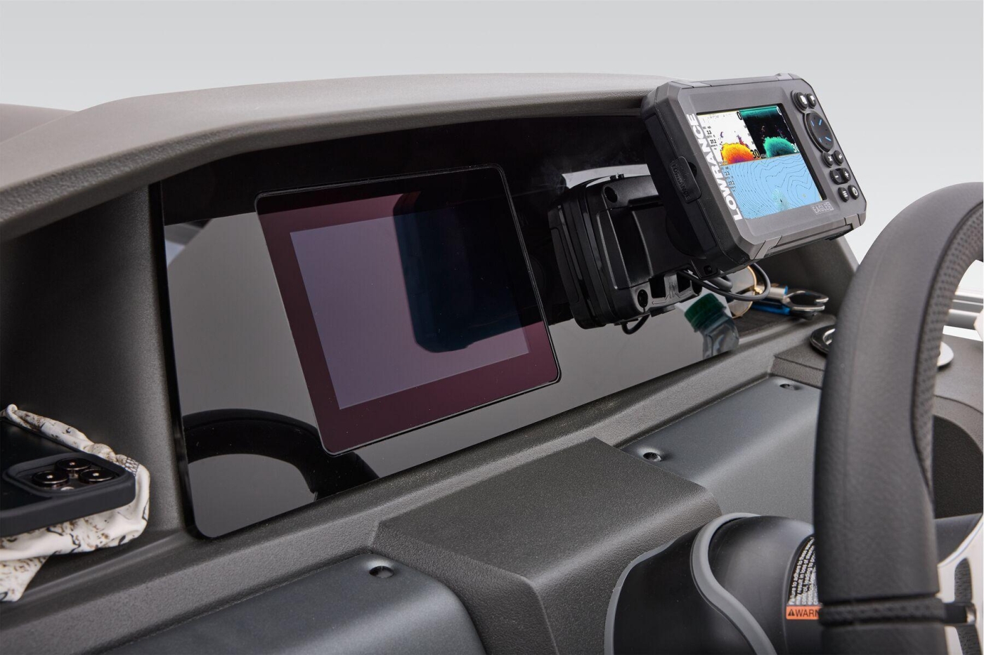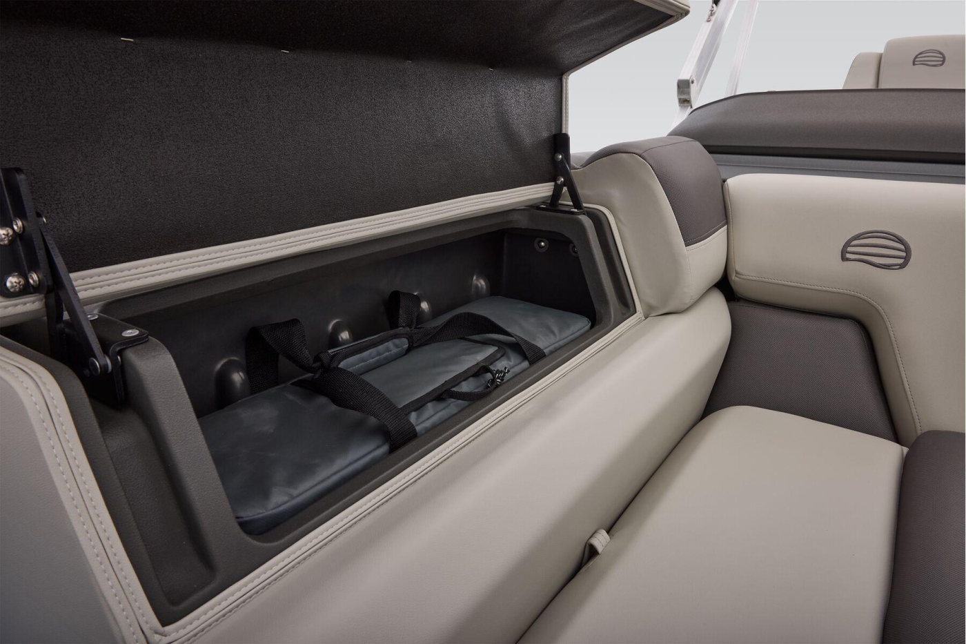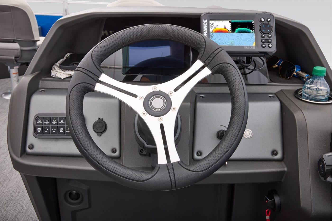 This fishing pontoon’s 19' 10" deck fits up to 10 people looking for a great day of casting lines. When it’s time for lunch, set up the removable table with drink holders near the comfortable L-shaped aft lounge. Your guests can also relax in the lounge seat in front of the driver’s console.