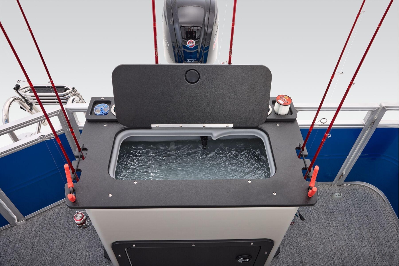 Post up in one of the three fishing chairs on the fore and aft fishing decks—each with its own livewell. The 2026 model year comes with a few exciting new features. The retracting ladder is wider and more ergonomic for easier entry. You'll also get more cupholders and storage space in the backrest cutouts.