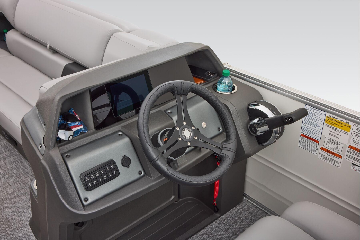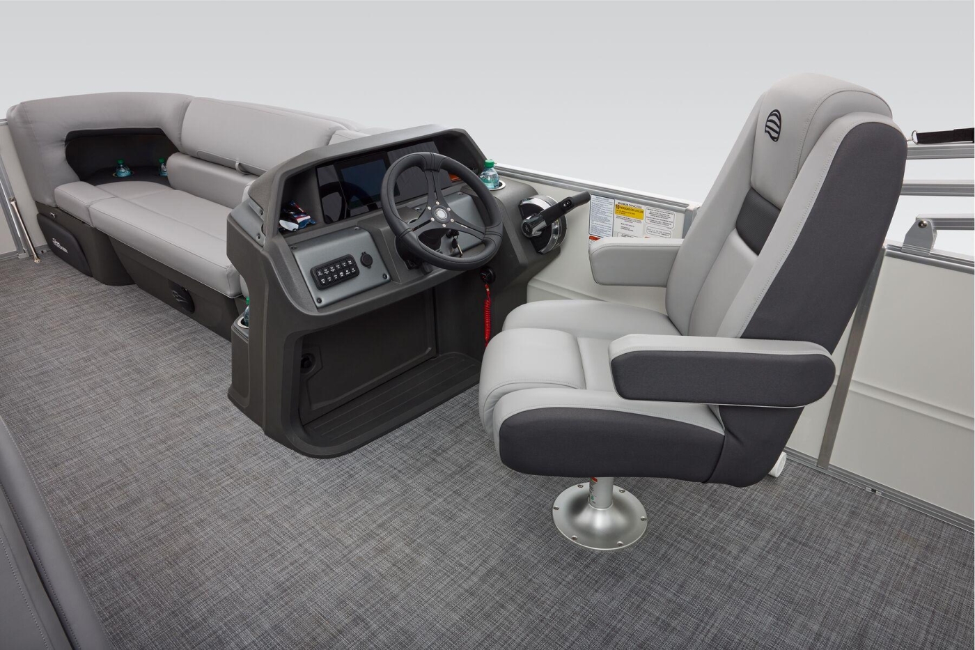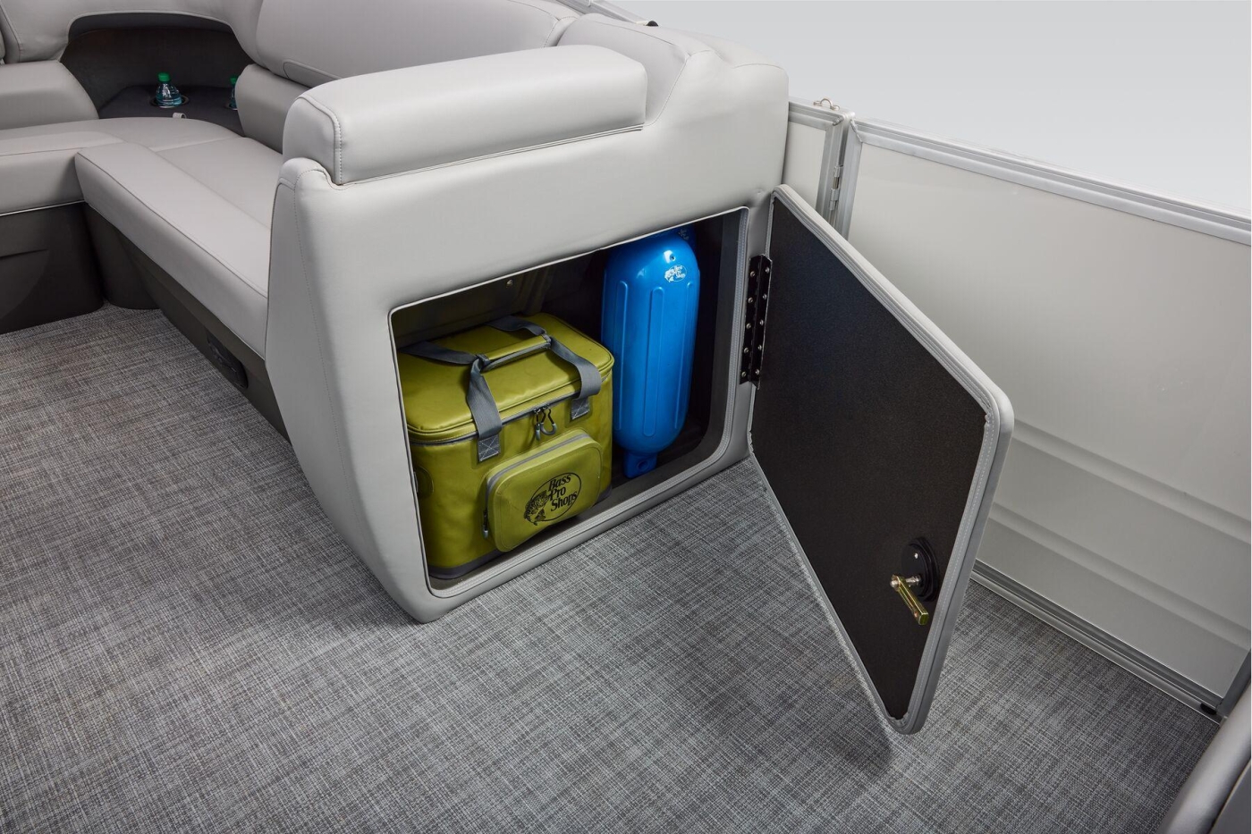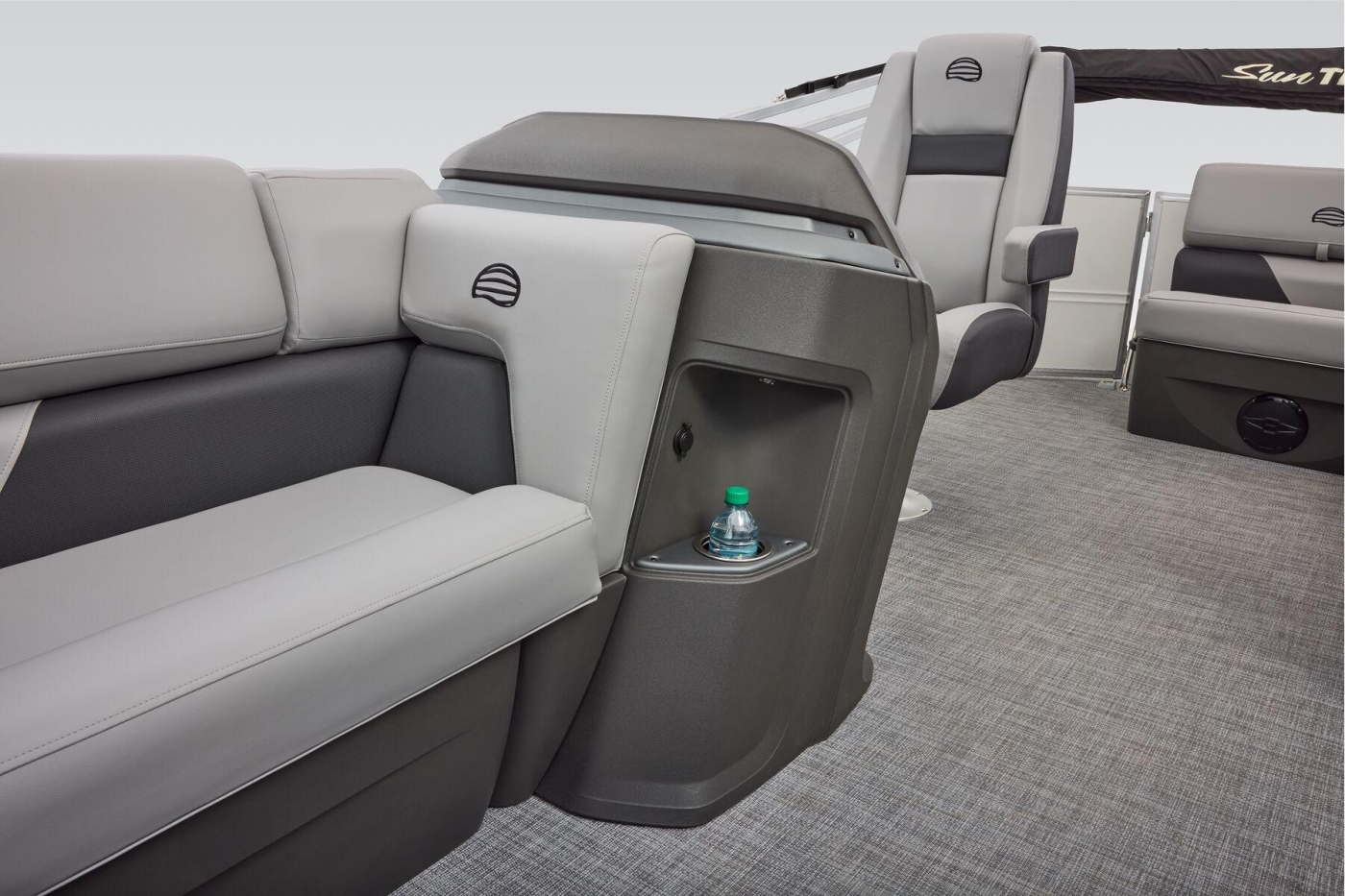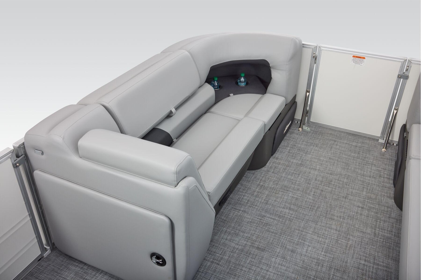 Some exciting new changes come with the 2026 model! The captain's console has received a complete facelift. The three corner lounges give your passengers plenty of space to relax in. These lounges have new accents that match the fence colors and also sport great new corner storage cubbies with more cupholders. Lift those pillow-top seats to reveal hidden storage compartments.