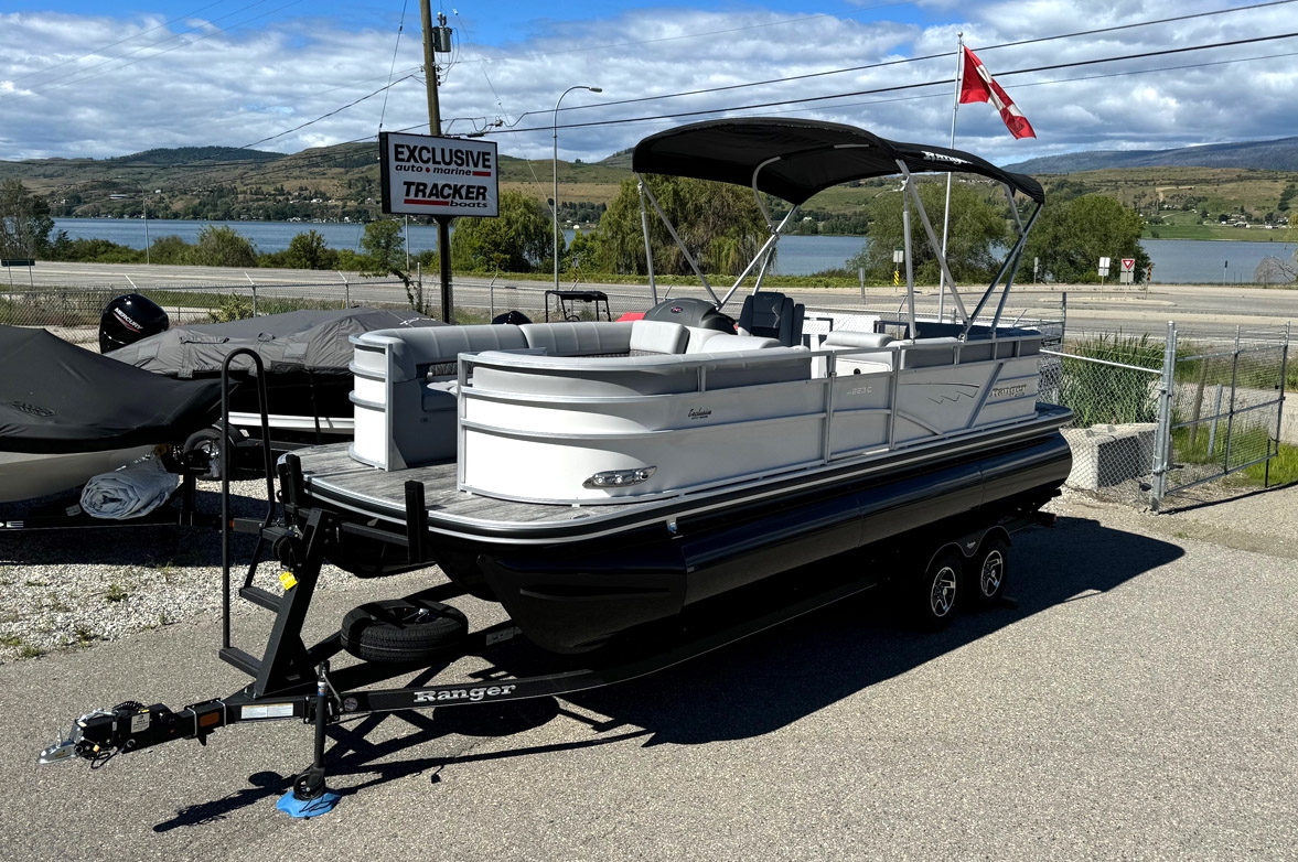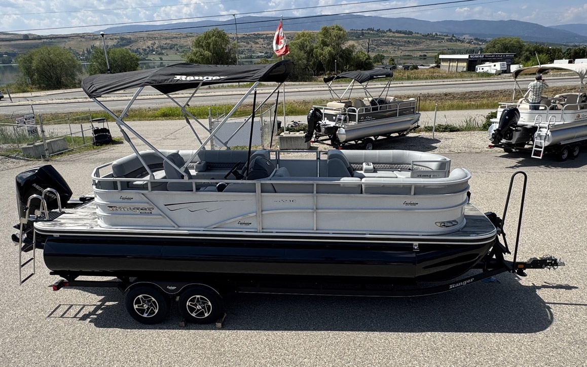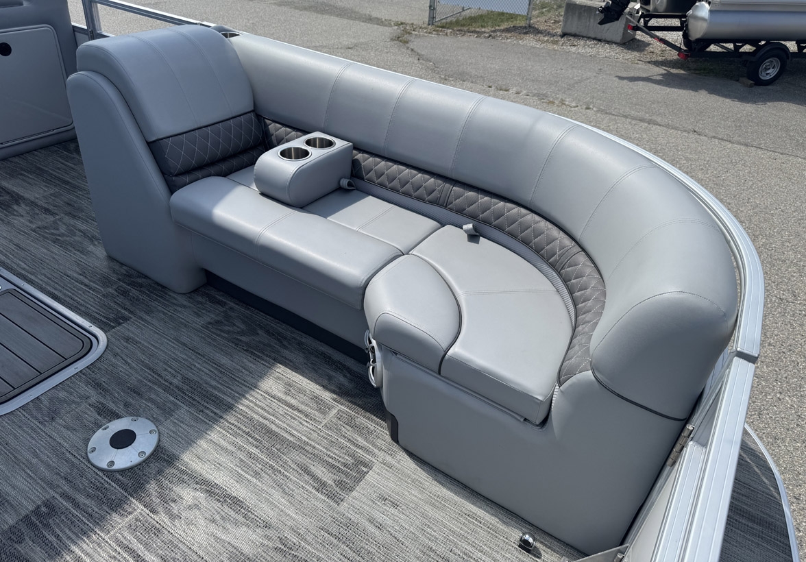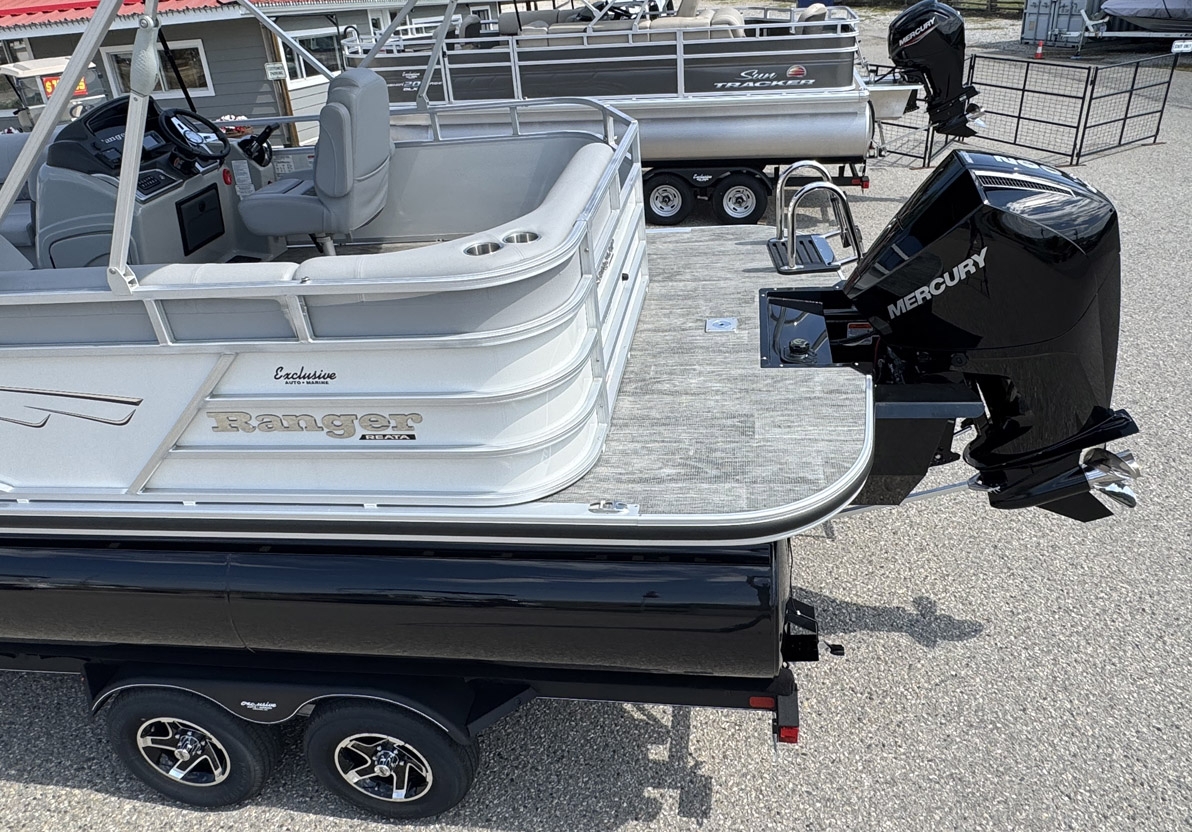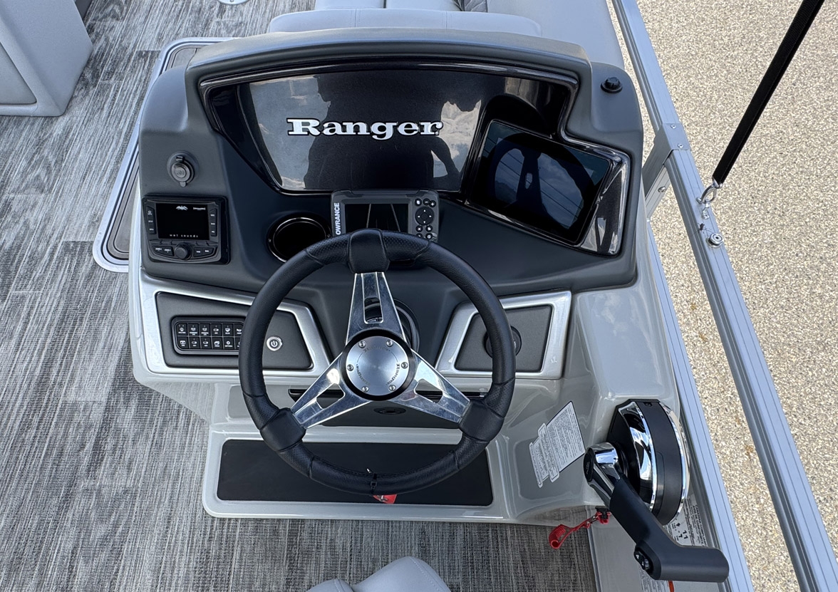 Smooth, solid power, refined luxury and maximum convenience define the Ranger® Reata® 223C. With three powder-coated pontoons, hand-crafted seating and a Dowco EasyLift™ 10-foot Bimini top, this pontoon is ready to move you in comfort and style. A full-width rear swim platform with boarding ladder are adjacent to the PowerPod™ motor extension that delivers enhanced performance and a quieter ride. Within the redesigned gates is luxury from top to bottom, from the soft-touch woven flooring to the extra-plush lounges and overstuffed captain’s chair. Storage beneath every seat and under the console easily hold a day’s worth of gear while a 200-horsepower rating ramps up excitement on demand. With so much capability, the Ranger 223C delivers high performance, even at 0 MPH.