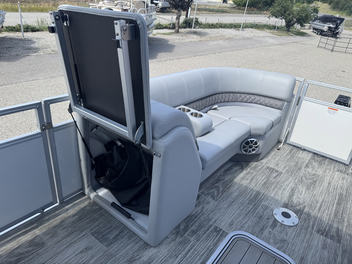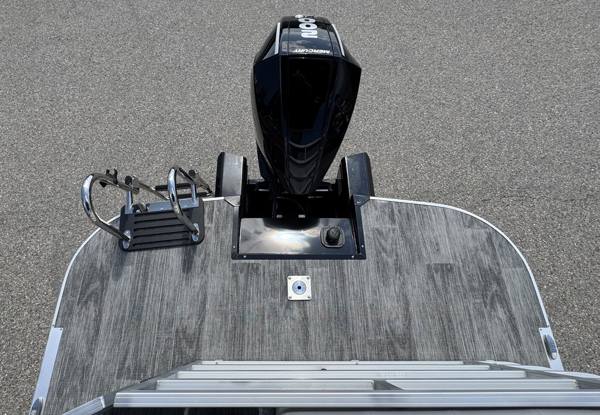 - Plush port and starboard bow lounges with rotomolded, drained storage