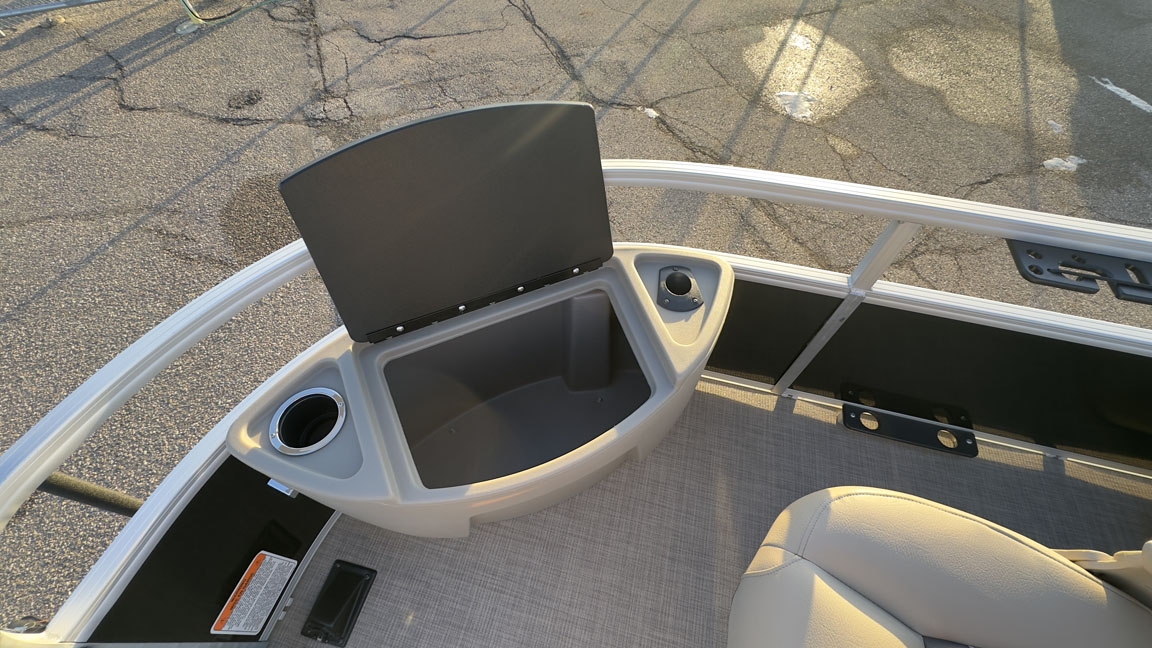 - Fishing Amenities: The boat features a bow fishing deck with two removable folding fishing chairs, a forward-console 9-gallon aerated livewell, an aft 8-gallon aerated livewell/baitwell, and rail-mounted rod and tool holders.