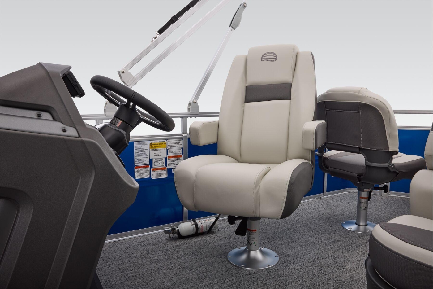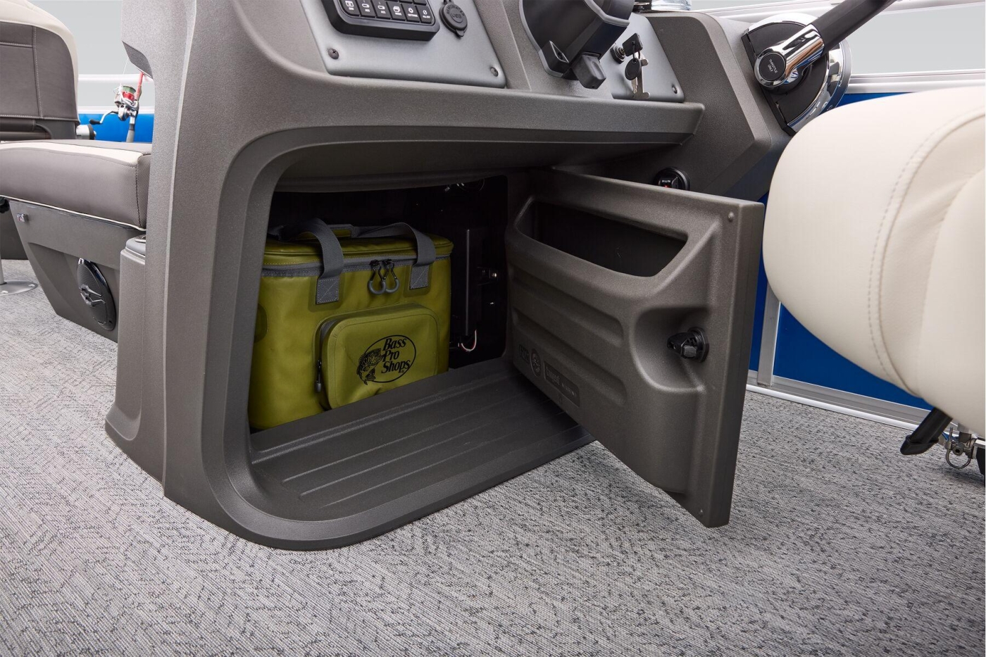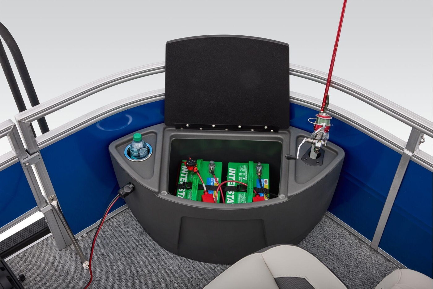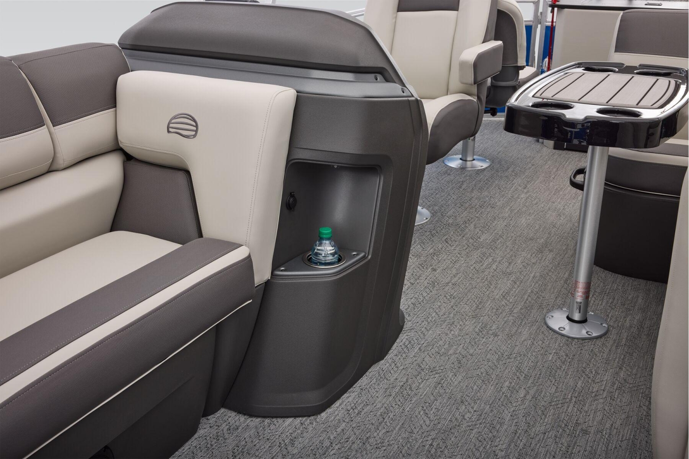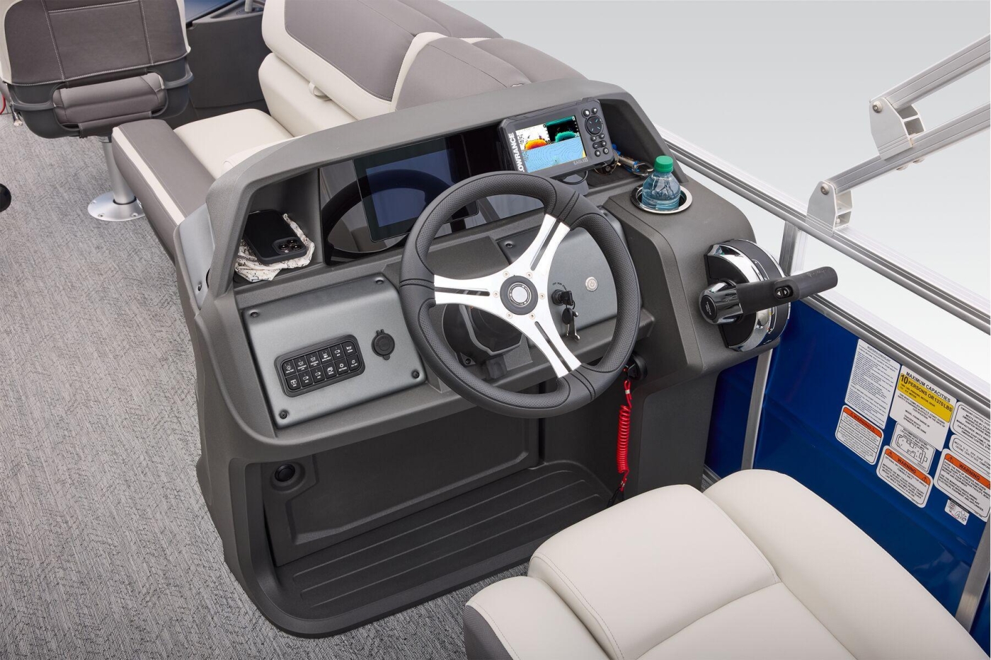 This fishing pontoon’s 19' 10" deck fits up to 10 people looking for a great day of casting lines. When it’s time for lunch, set up the removable table with drink holders near the comfortable L-shaped aft lounge. Your guests can also relax in the lounge seat in front of the driver’s console.