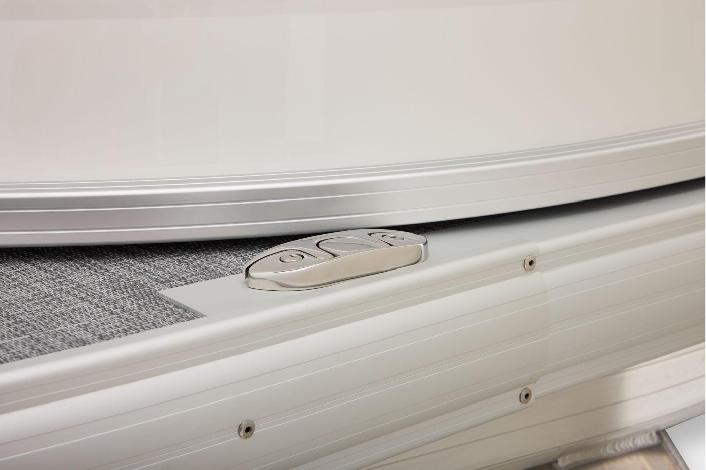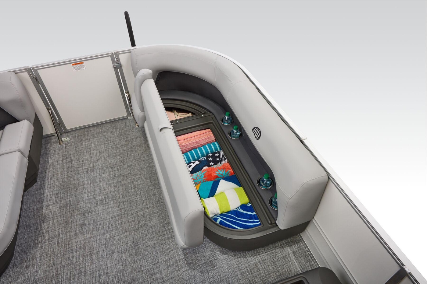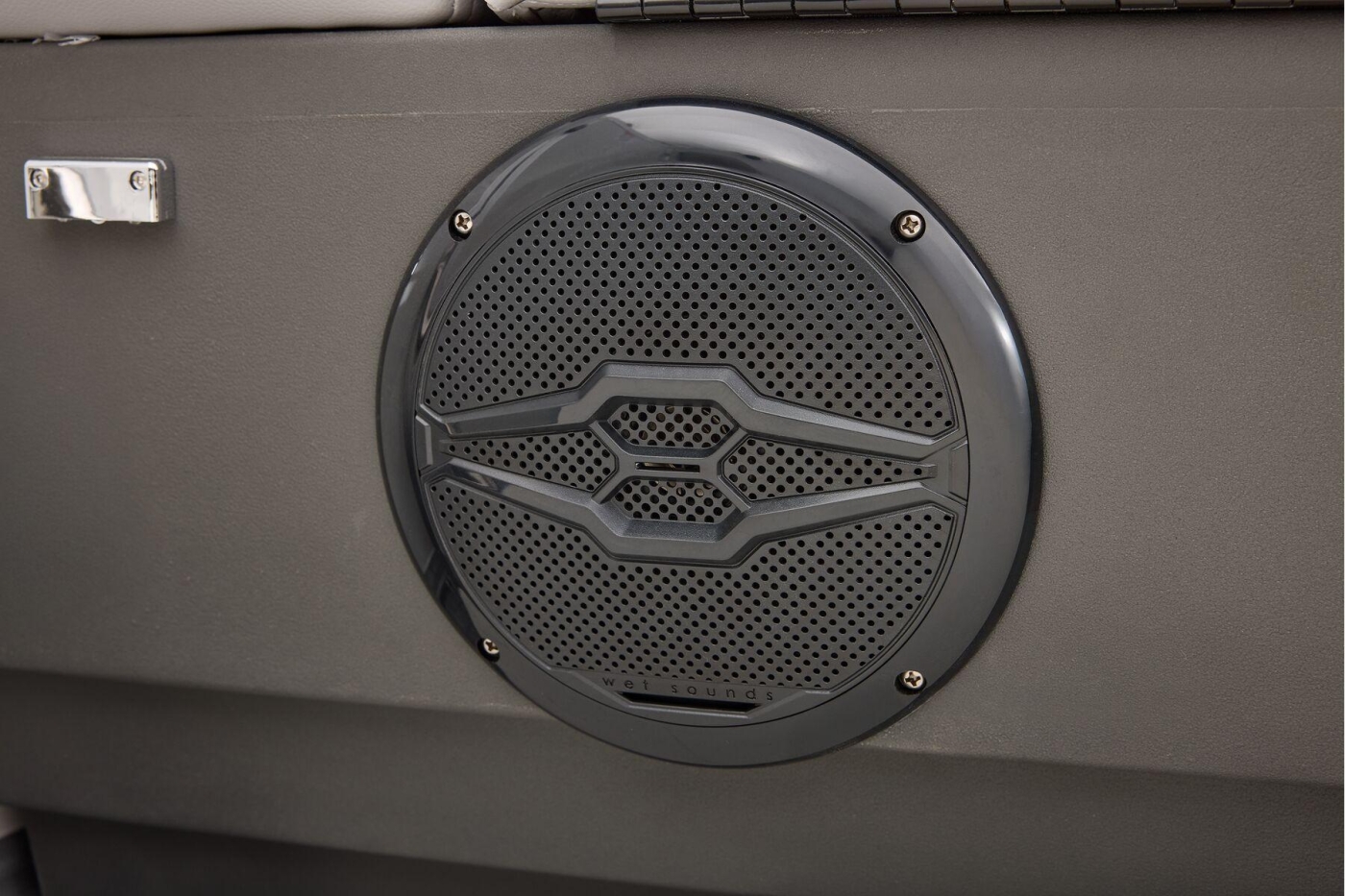 This year's PARTY BARGE gets some slick upgrades. Extra cupholders and storage built into the lounge backrests and improved handles make keeping your supplies at hand easier than ever. A new driver console design creates extra style. The boarding ladder has wider, more ergonomic steps. Crank up the soundtrack of the summer with the standard Bluetooth®-capable Wet Sounds™ stereo and pull up the 7' bimini top to party in the shade when the sun is high. Find your corner of the lake and relax in one of the three corner lounges.
