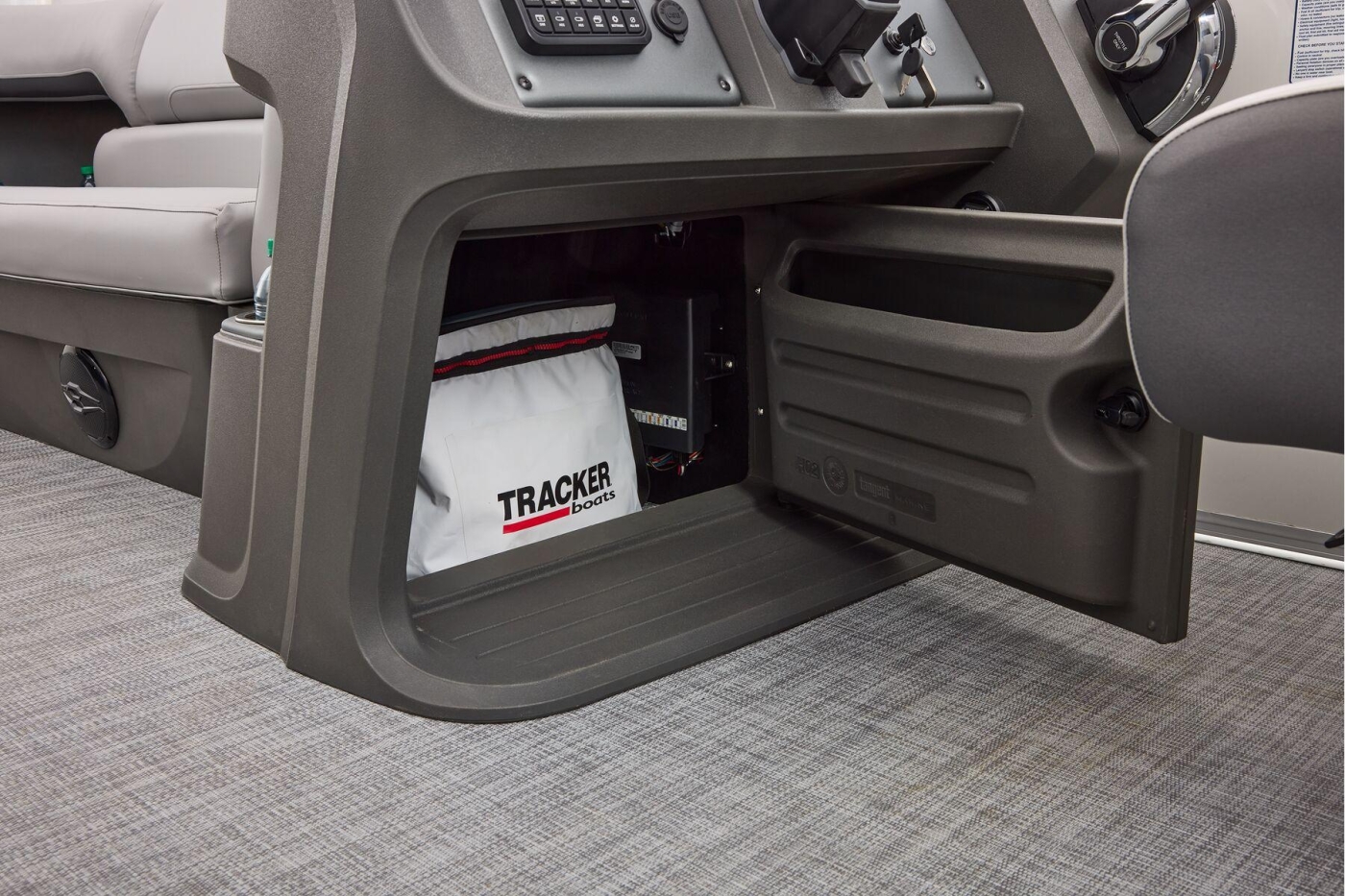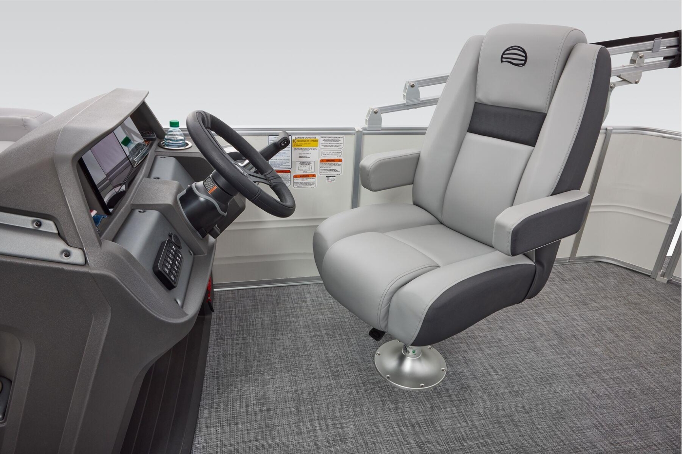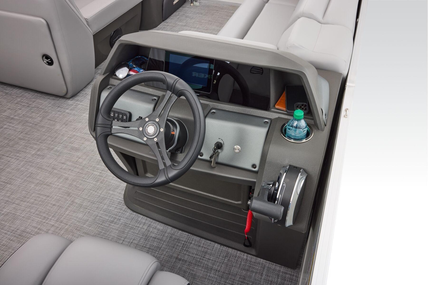 Some exciting new changes come with the 2026 model! The captain's console has received a complete facelift. The three corner lounges give your passengers plenty of space to relax in. These lounges have new accents that match the fence colors and also sport great new corner storage cubbies with more cupholders. Lift those pillow-top seats to reveal hidden storage compartments.