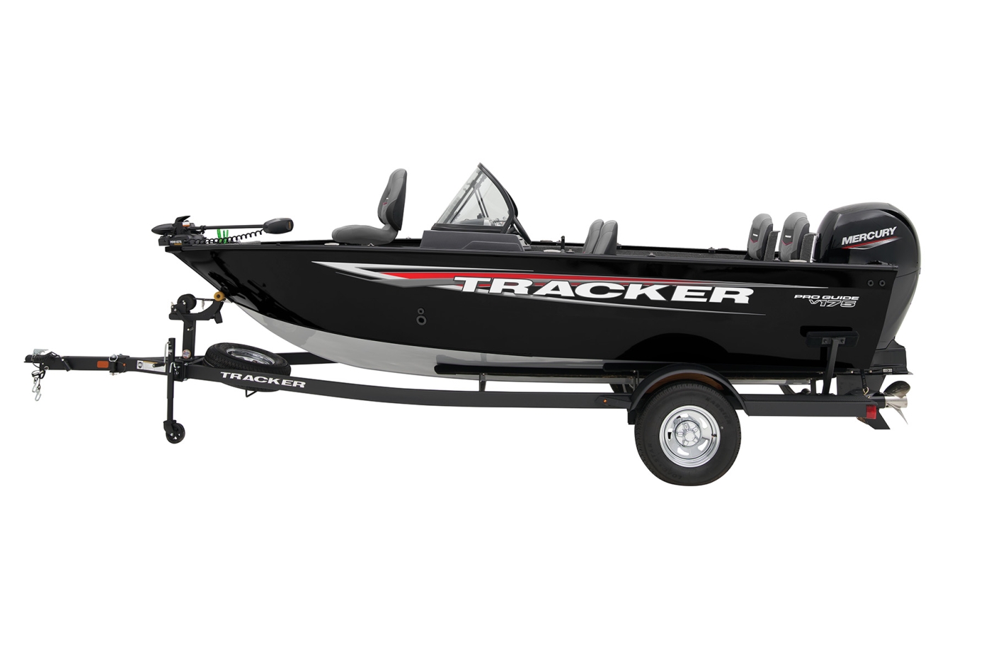Whether the day calls for fishing, tubing, skiing, cruising or all of the above, the TRACKER PRO GUIDE™ V-175 Combo delivers the versatility and amenities to make it happen. Measuring 17’ 7” in length and 8’ 1” in width, the V-175 Combo has exceptional stability for cruising and casting. Storage is perfect for rods and tackle or watersports gear. A growling Mercury® FourStroke engine has the pep to knock down rollers and pop up a wakeboarder with ease. The back deck serves are a solid casting platform when down, and when up adds a pair of seats covered in premium marine-grade vinyl. The console is shrouded by a wraparound walk-thru windshield and carries a full complement of gauges, a fishfinder, and easy, responsive steering. Whether you're a seasoned angler or a family looking for a versatile watercraft, the TRACKER PRO GUIDE™ V-175 Combo delivers on both performance and comfort, making it a popular choice among all water lovers.