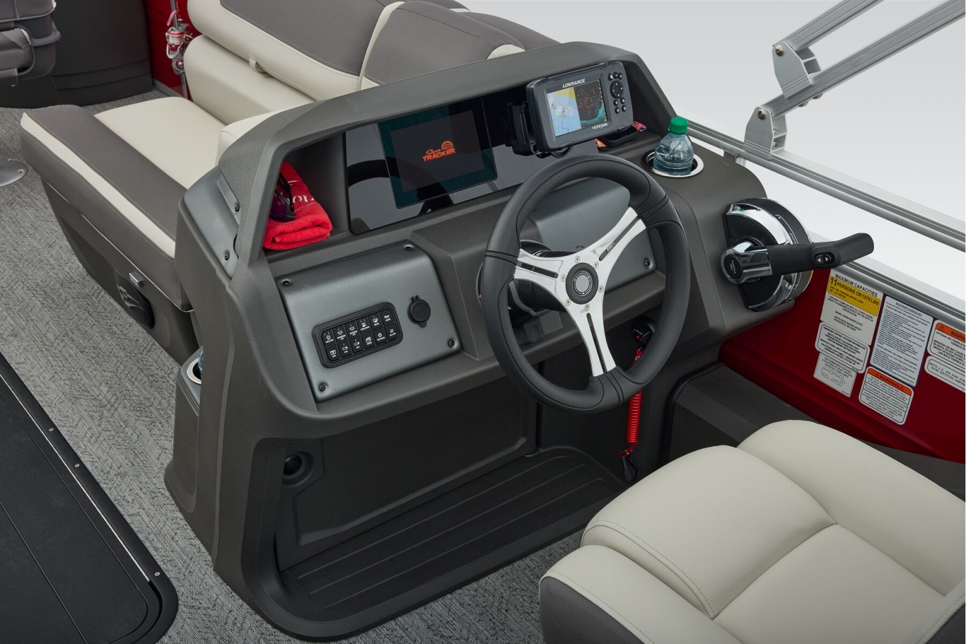 The 2026 SUN TRACKER® FISHIN’ BARGE® 22 XP3's third pontoon, lifting strakes, and hydraulic steering let it operate like a fiberglass boat with the stability only a pontoon can offer.