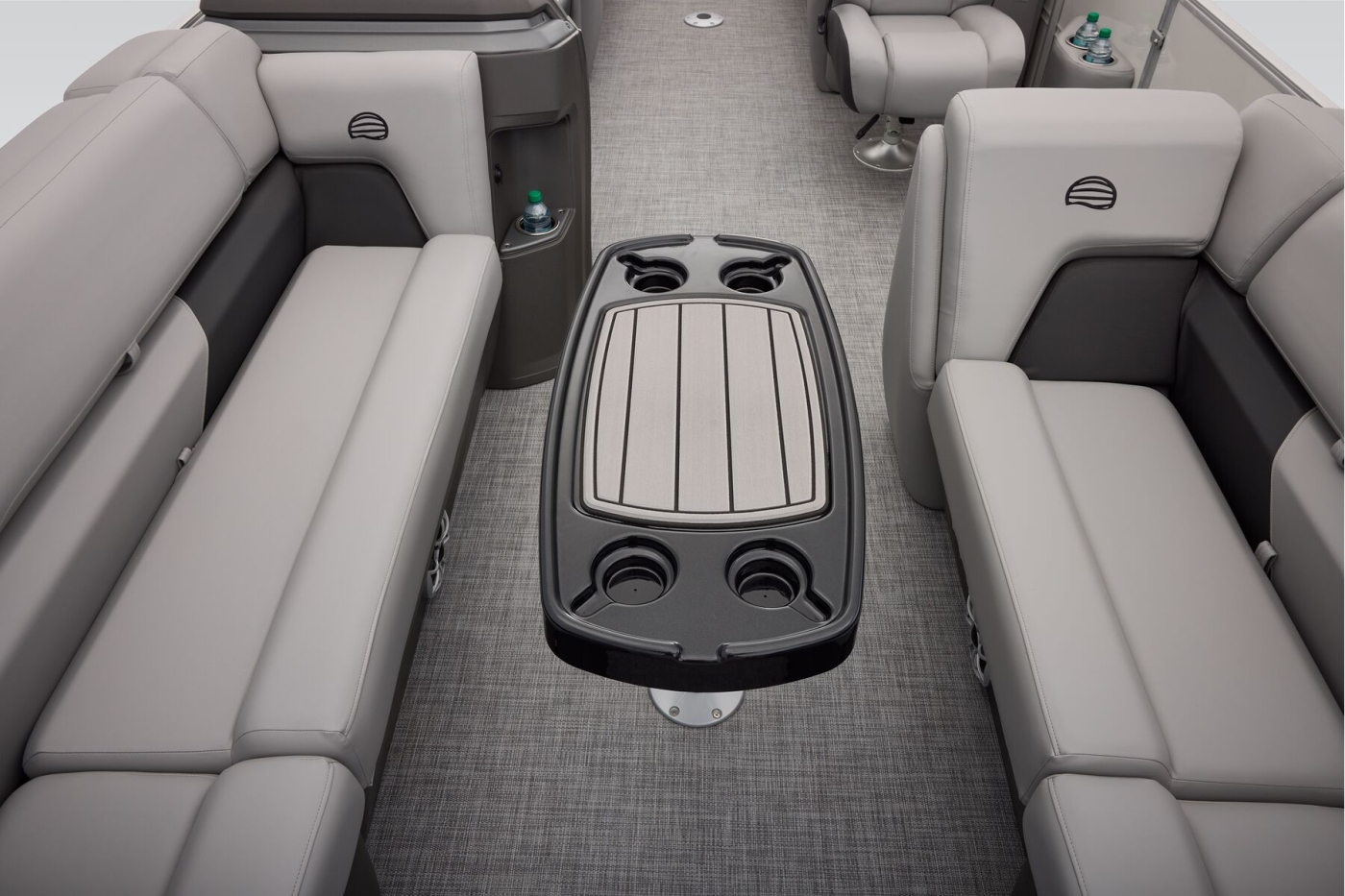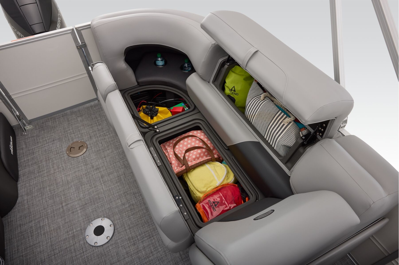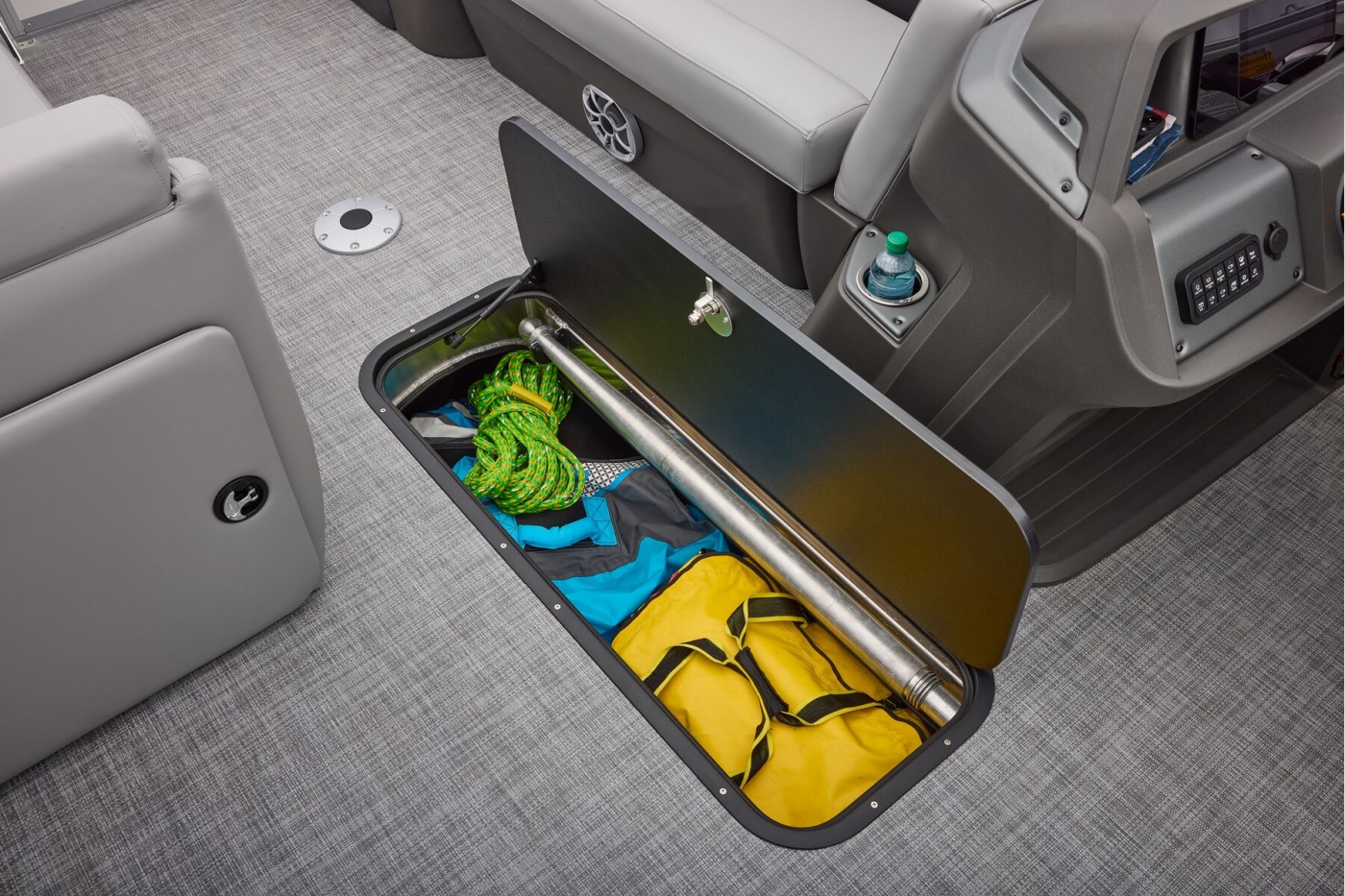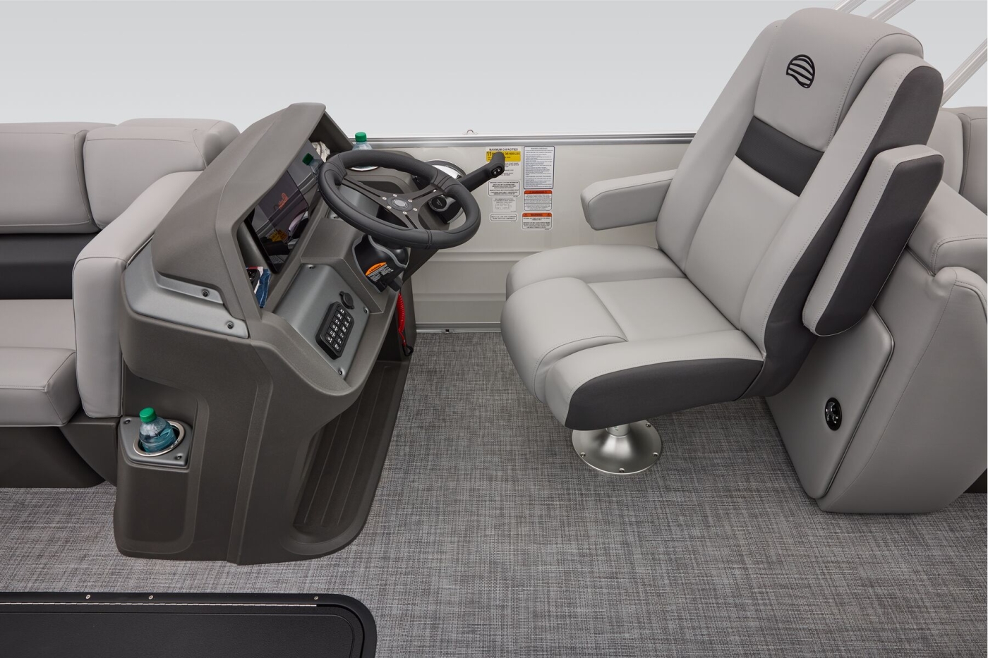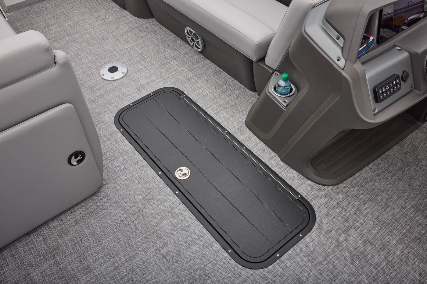 This year's 22 XP3 has an all-new interior has some exciting new features, including backrest cubbies that increase storage space and add extra cupholders that can keep larger bottles out of the way. The couches have bright accents that match the fence colors for an extra splash of style. The driver's console also got a big facelift with upgraded tech, making the PARTY BARGE the best-looking pontoon on the lake.