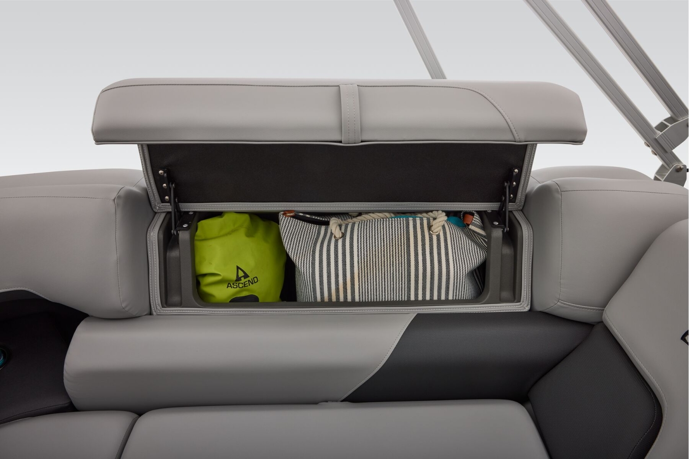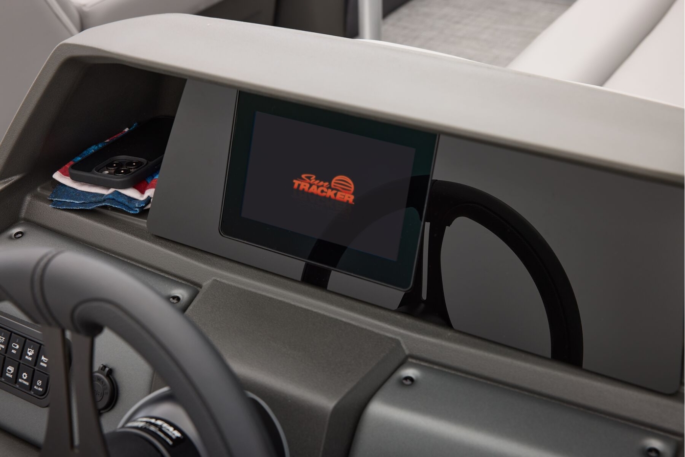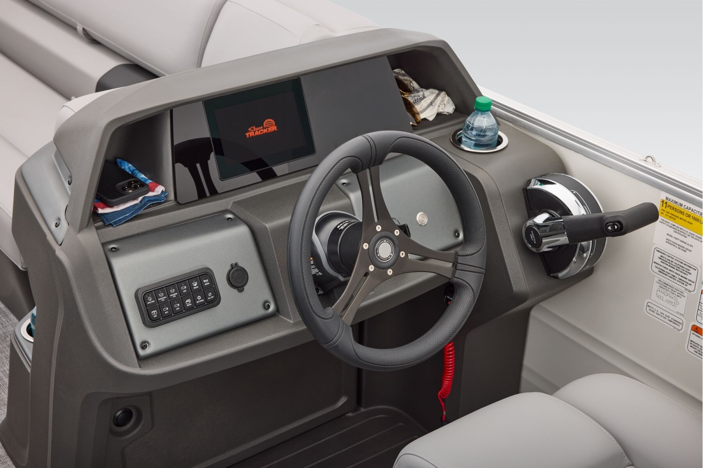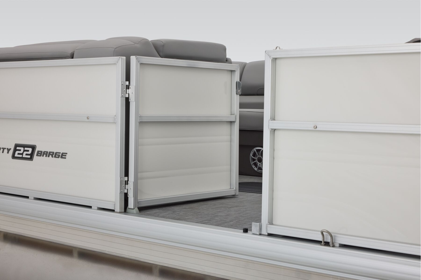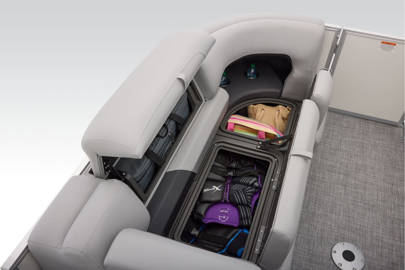 This year's 22 XP3 has an all-new interior has some exciting new features, including backrest cubbies that increase storage space and add extra cupholders that can keep larger bottles out of the way. The couches have bright accents that match the fence colors for an extra splash of style. The driver's console also got a big facelift with upgraded tech, making the PARTY BARGE the best-looking pontoon on the lake.