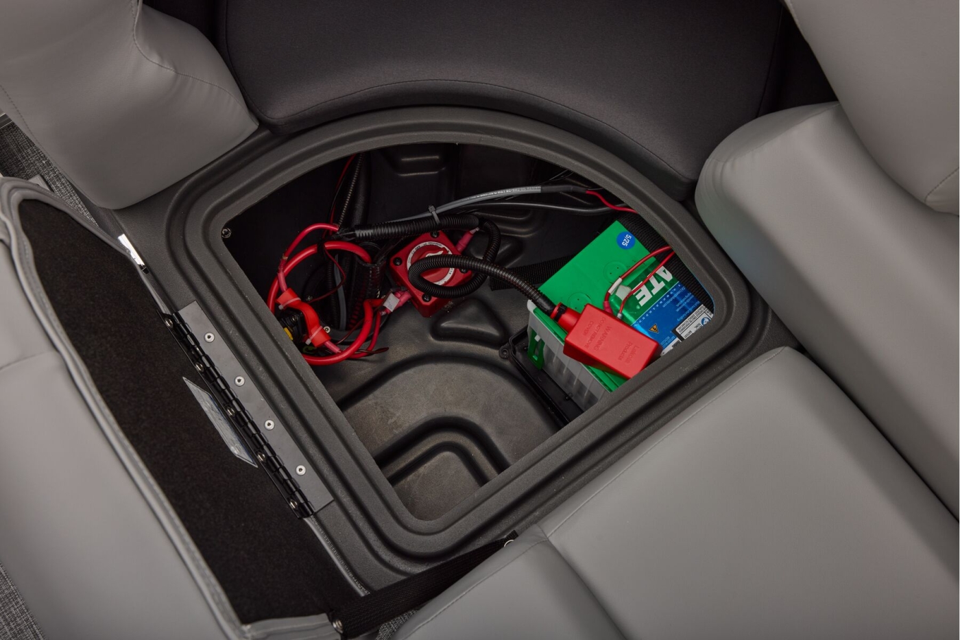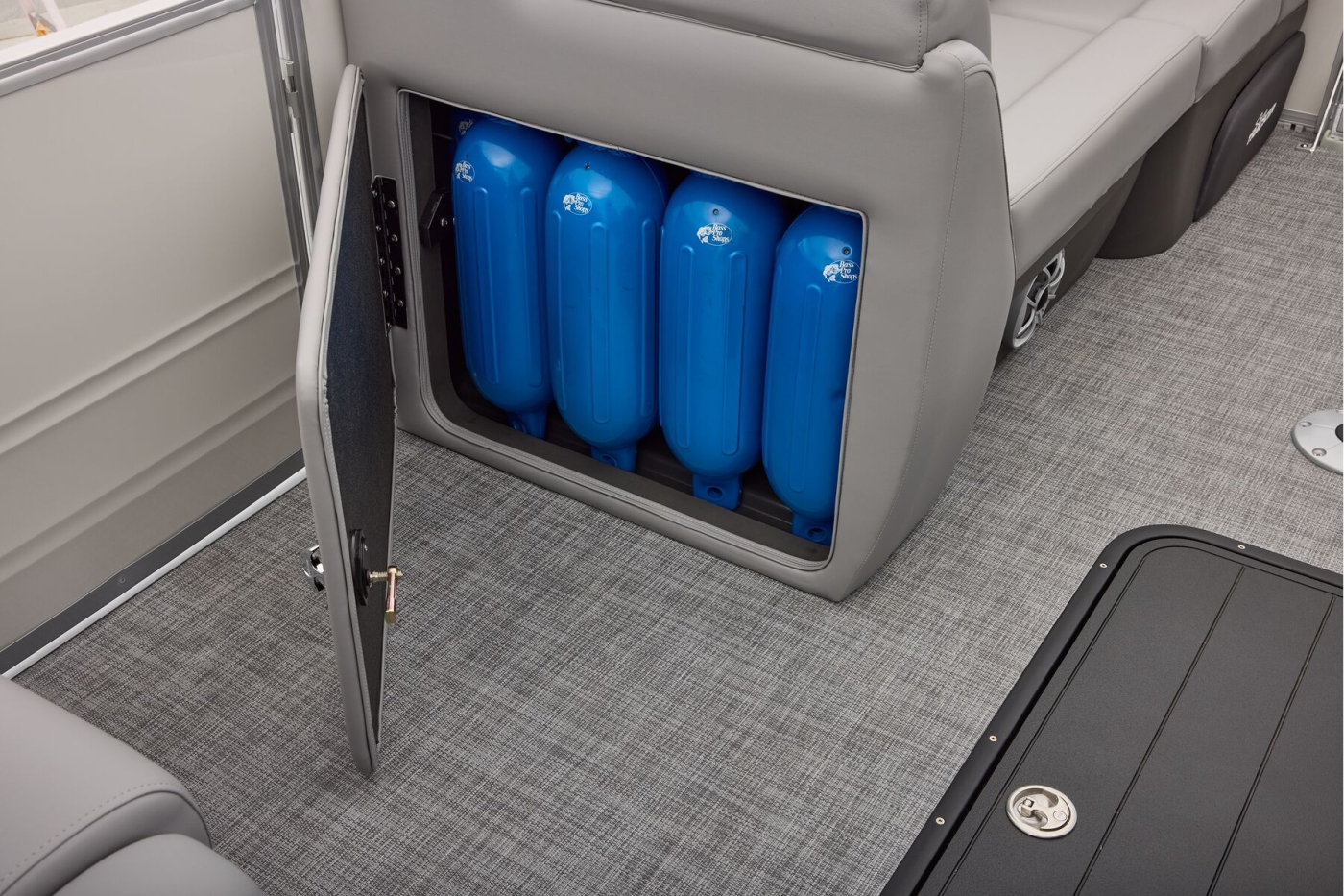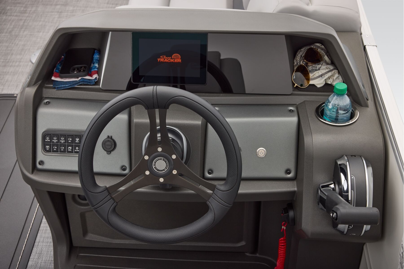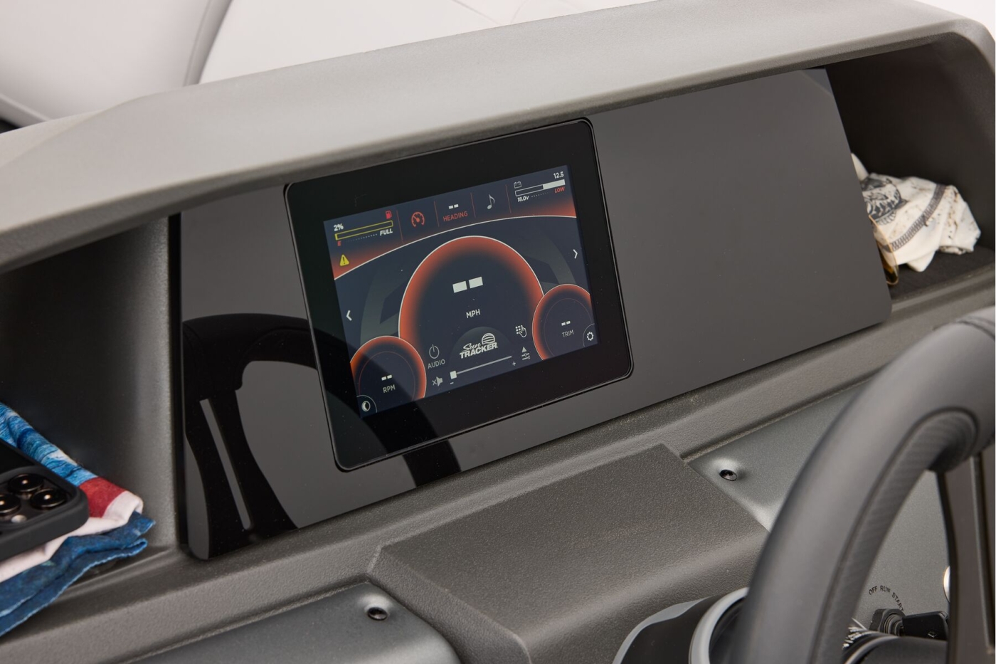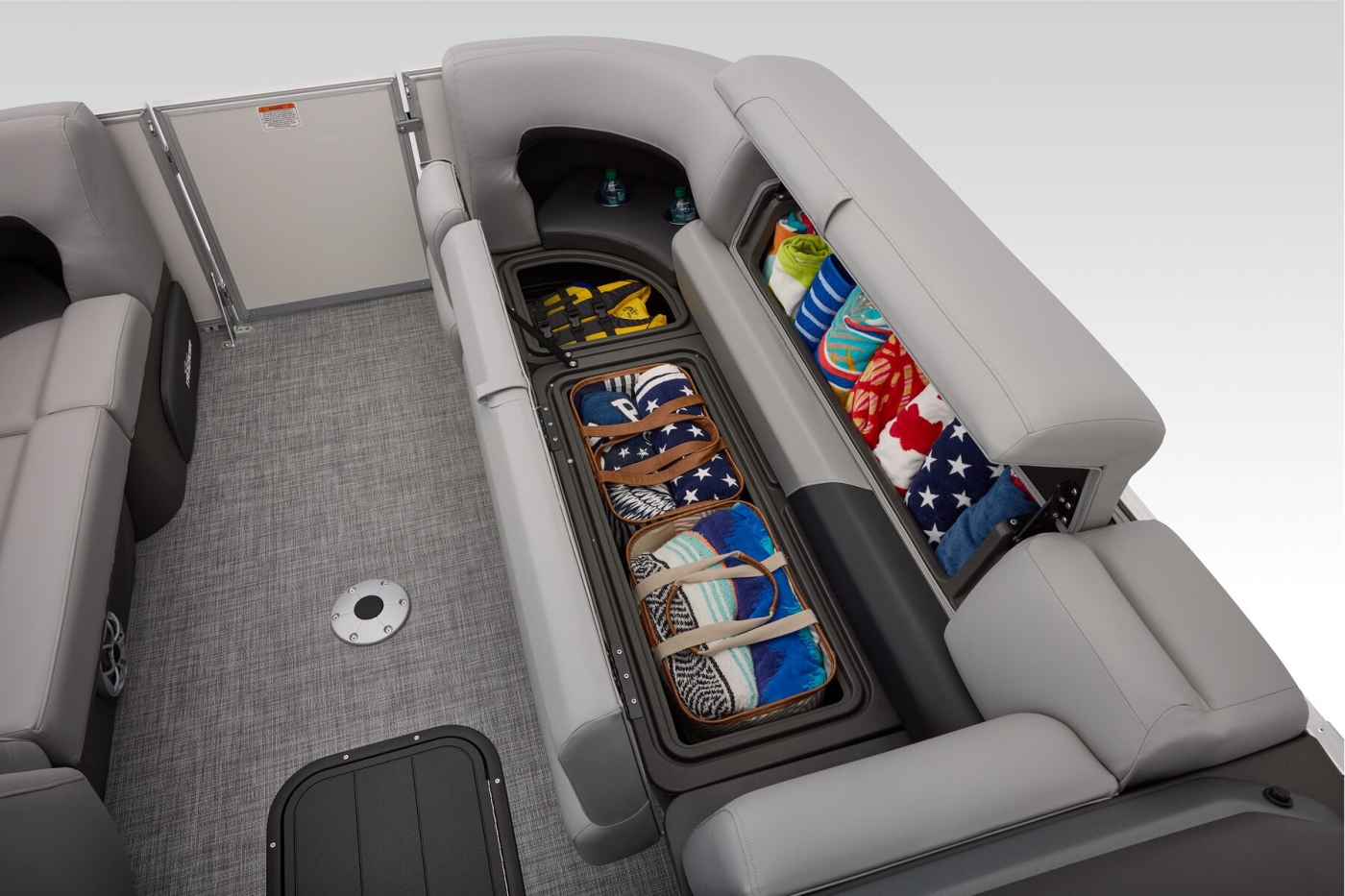 This year's 22 XP3 has an all-new interior has some exciting new features, including backrest cubbies that increase storage space and add extra cupholders that can keep larger bottles out of the way. The couches have bright accents that match the fence colors for an extra splash of style. The driver's console also got a big facelift with upgraded tech, making the PARTY BARGE the best-looking pontoon on the lake.